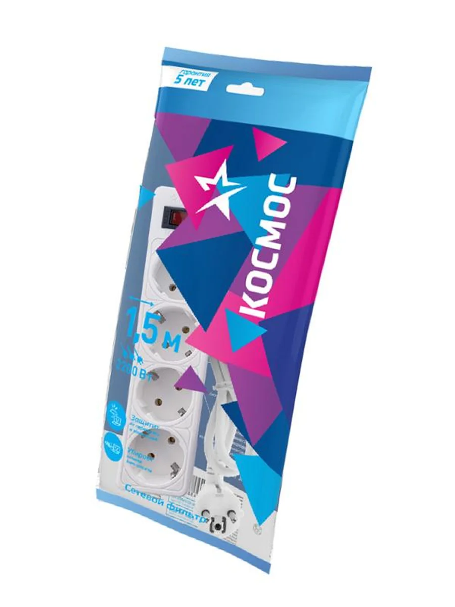 Белый сетевой фильтр с коротким проводом 1,5м на 4 гнезда с двумя защитами для гаджетов и дорогой техники – варистор для защиты от «плохого» тока и терморазмыкатель для защиты от перегрузки и замыкания в сети. Сзади специальное крепление – можно повесить на стену. Корпус из негорючего полипропилена, 100% медный кабель ПВС 3х0,75мм (с заземлением). Контактная группа из латуни не деформируется со временем. Максимальная мощность подключения 2200Вт – хватит для нескольких устройств одновременно. 5 лет гарантии