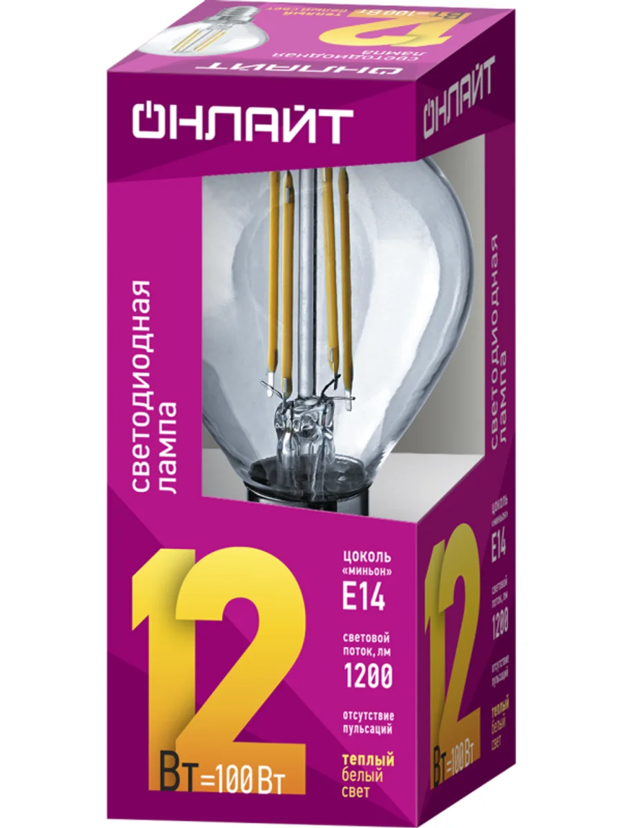 Лампа светодиодная филаментная 80 890 OLL-F-G45-12-230-2.7K-E14 12Вт шар прозрачная 2700К тепл. бел. E14 1200лм 220-240В ОНЛАЙТ 80890 - купить в KeepBuilding | KeepBuilding