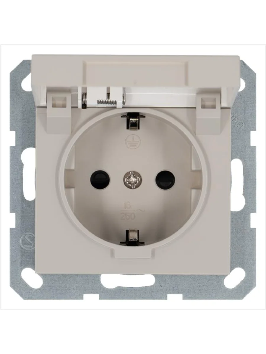 Розетка 1-м Shuko 16А IP20 с заземл. защ. шторки с крышкой механизм тауп Jasmart G5505T