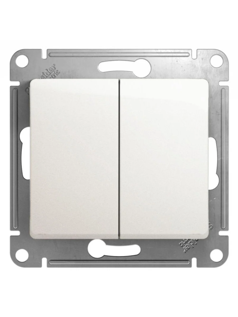 Механизм Systeme Electric (ранее Schneider Electric) серии Glossa (цвет перламутр) выключателя 2-клавишного подходит для сетей 250 В, на ток 10 А. - Двухклавишный выключатель позволяет управлять двумя источниками света с одной точки. - Выполнен из материала PС+ASA, стойкого к УФ-излучению и появлению царапин. - Эргономичные клеммы расположены в два ряда: сверху и снизу.
