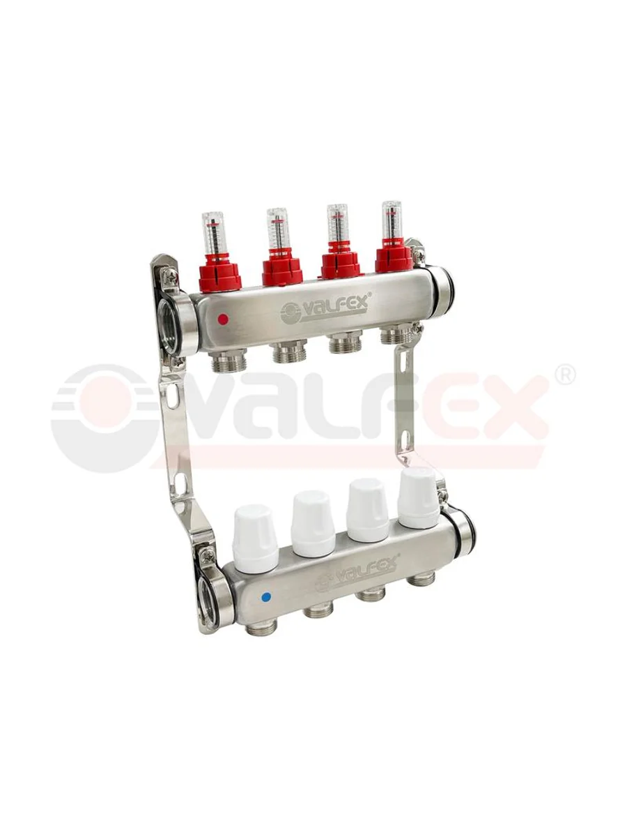 Блок коллекторов 1дюйм х 3 вых. евроконус 3/4дюйм с расходомером нерж. сталь (2) К VALFEX VF.584.0603
