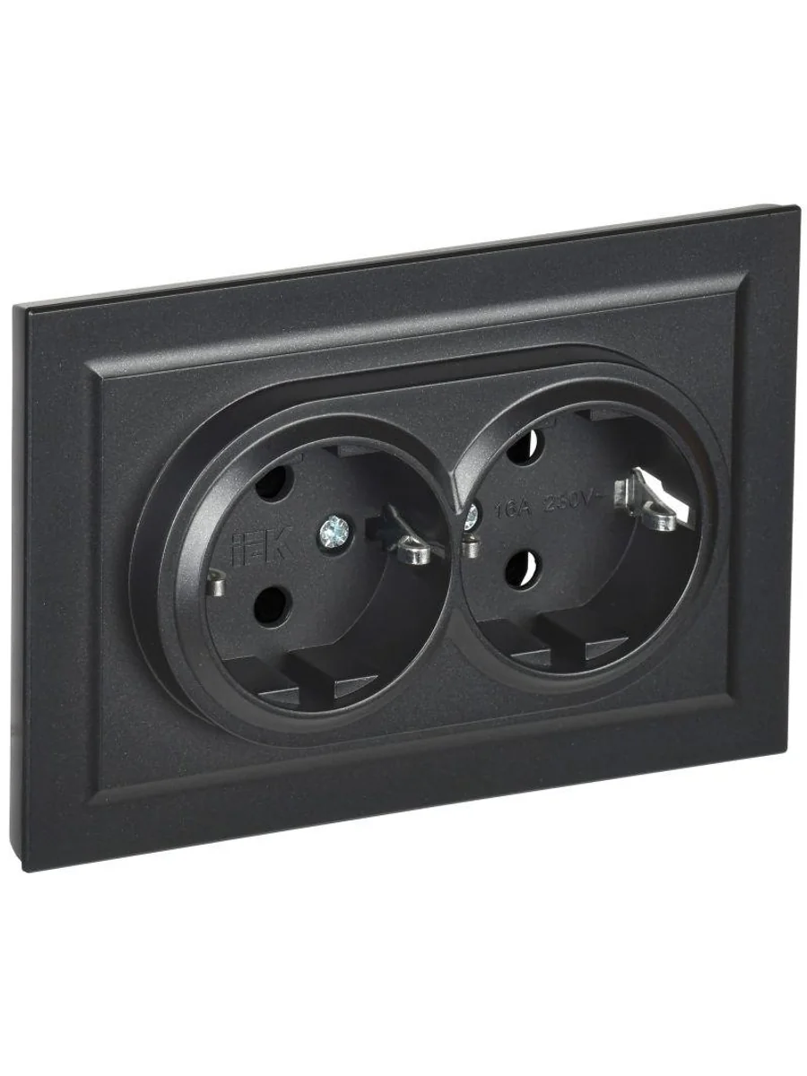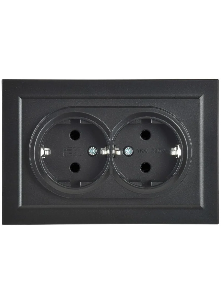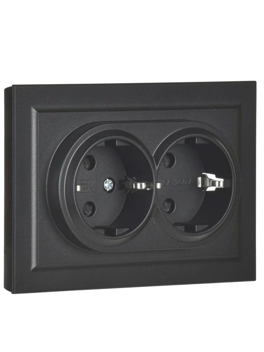 Розетка 2-м СП BRITE РС12-3-БрЧ 16А в сборе с заземл. без защ. шторок черн. IEK BR-R21-16-K02-F - купить в KeepBuilding | KeepBuilding