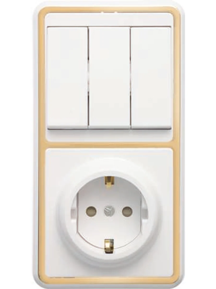 Блок БКВР-036 Бэлла (3-кл. выкл. + евророзетка с защ. шторками) зол. Кунцево 5848 - купить в KeepBuilding | KeepBuilding