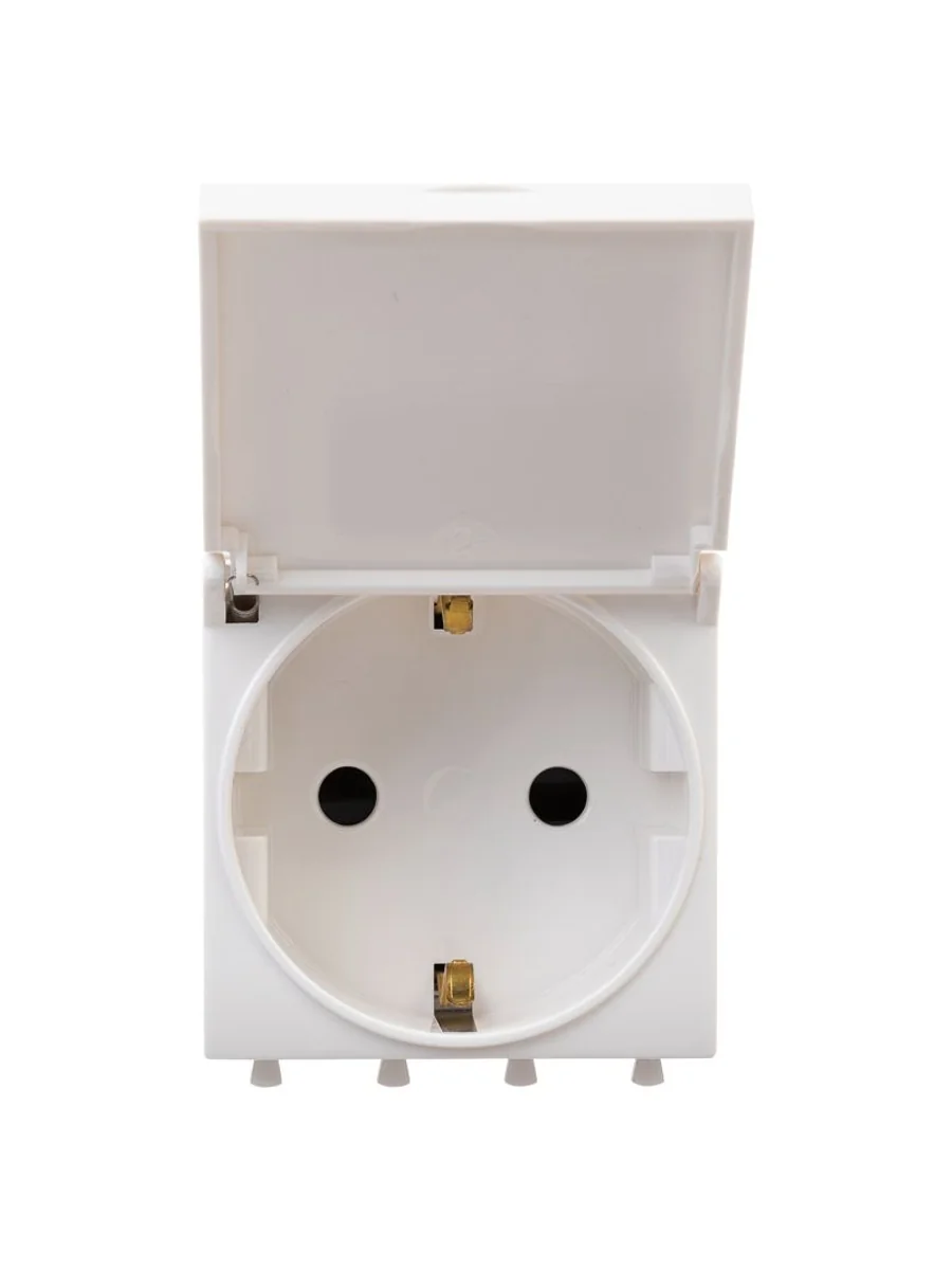Розетка 2P+E (однофазная розетка с заземлением) модульная с крышкой от ДКС применяется для подключения различных электроприборов. Изделие предназначено для монтажа в систему пластиковых коробов "In-liner Front" и систему организации рабочих мест "Sotto" при помощи рамок-суппортов и каркасов "Avanti" (код 4400912 и т.д.). Лаконичные формы электроустановочных изделий "Avanti" отлично сочетаются с их глубокими цветами. Пластиковые части устройства имеют оттенок "Белое облако". Это классический цвет, который легко сочетается с любыми оттенками в интерьере. Производитель оставляет за собой право вносить во внешний вид изделия изменения, которые не влияют на его функционал, безопасность и надежность.