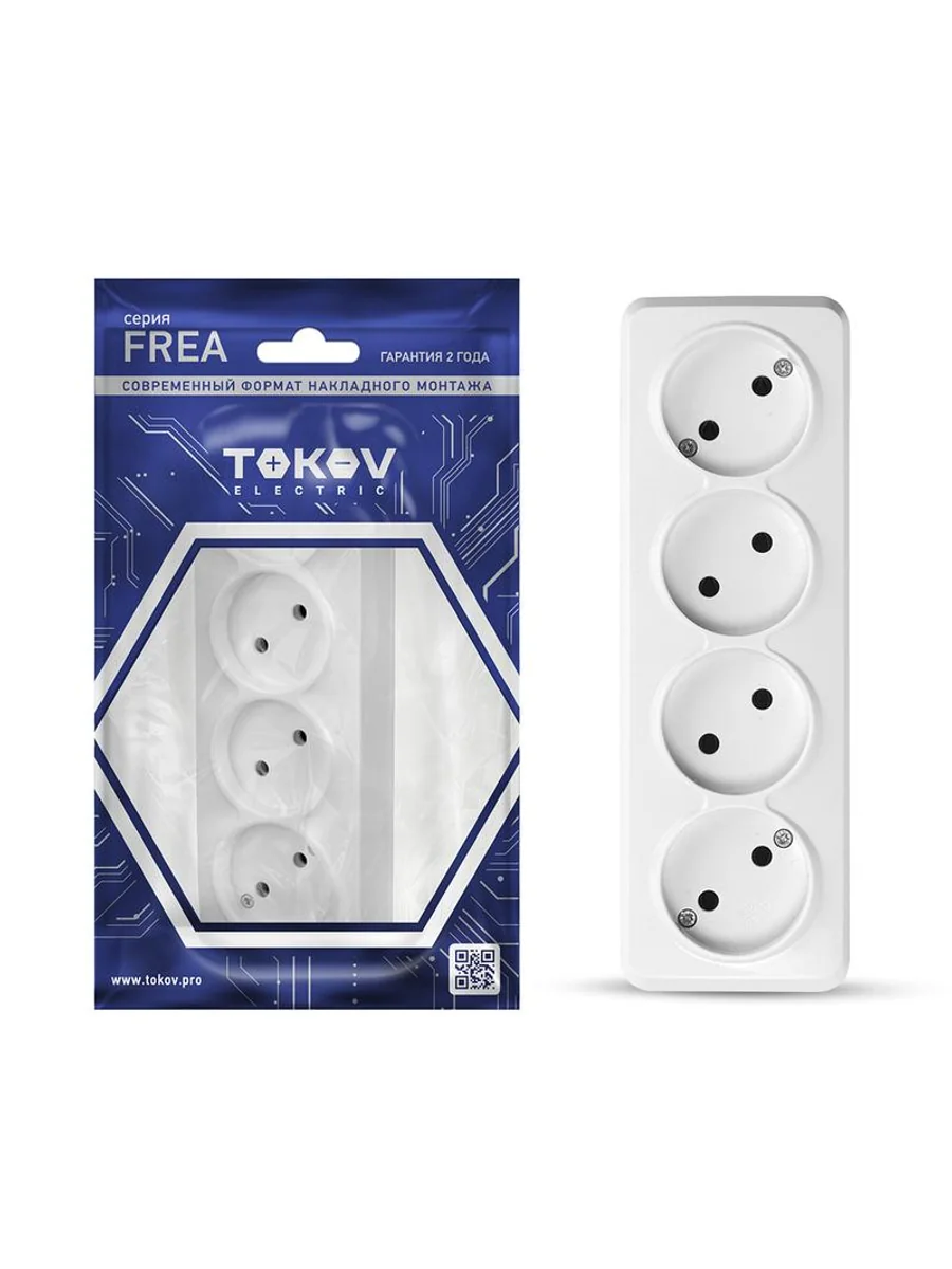 Розетка 4-м ОП Frea 16А IP20 250В без заземл. АБС-пластик бел. TOKOV ELECTRIC TKE-FR-R4-C01