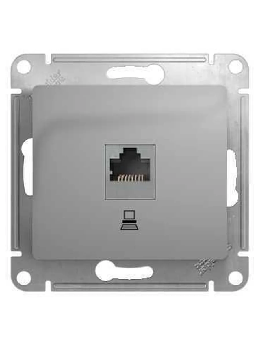 Механизм Systeme Electric серии Glossa (цвет алюминий) розетки компьютерной с разъёмом RJ45 категория 5е предназначен для удобного и быстрого подключения вашего компьютера к компьютерной сети. - Выполнен из материала PС+ASA, стойкого к УФ-излучению и появлению царапин (ранее Schneider Electric MGU5.421.30ZD, NU541130).