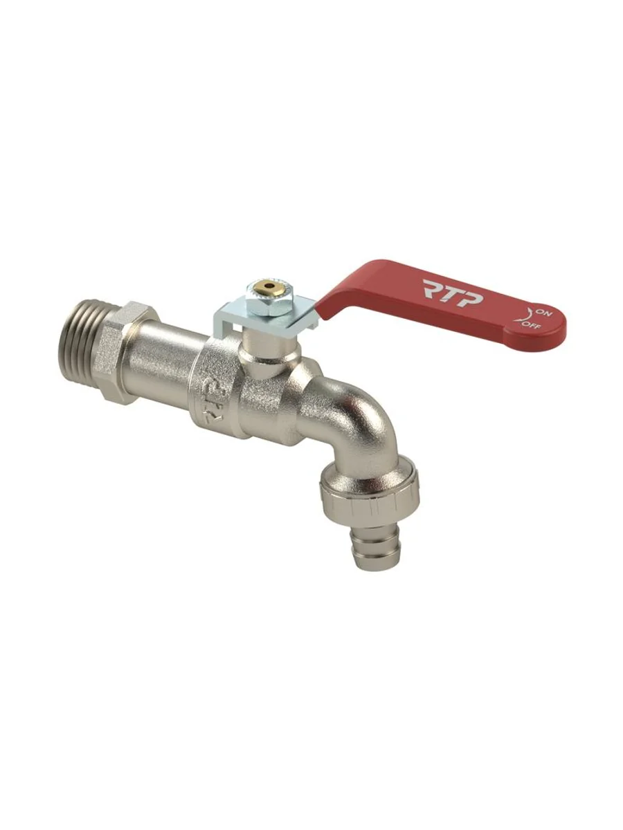 Кран шаровой водоразборный ручка рычаг латунь наружн./наружн. резьба 1/2х1/2дюйм-14 никель RTP 34659