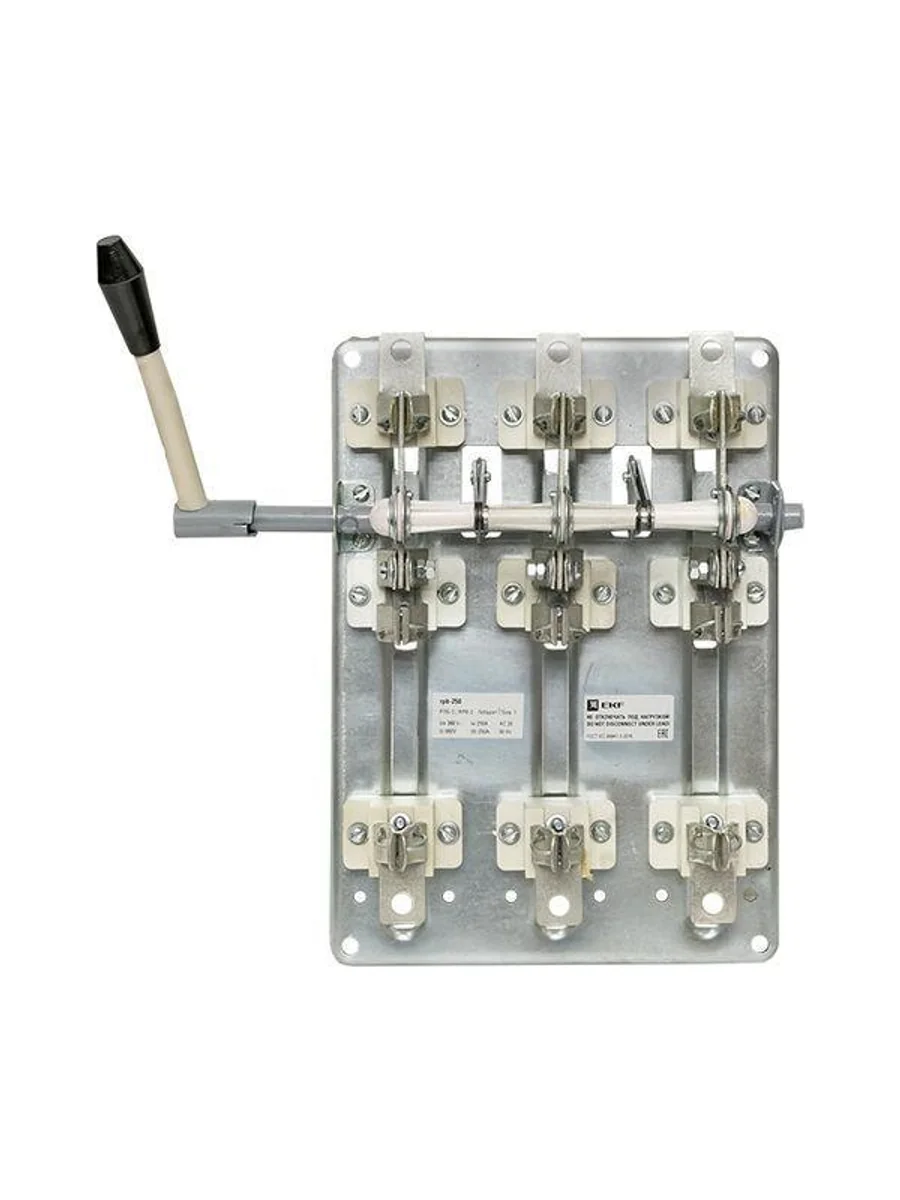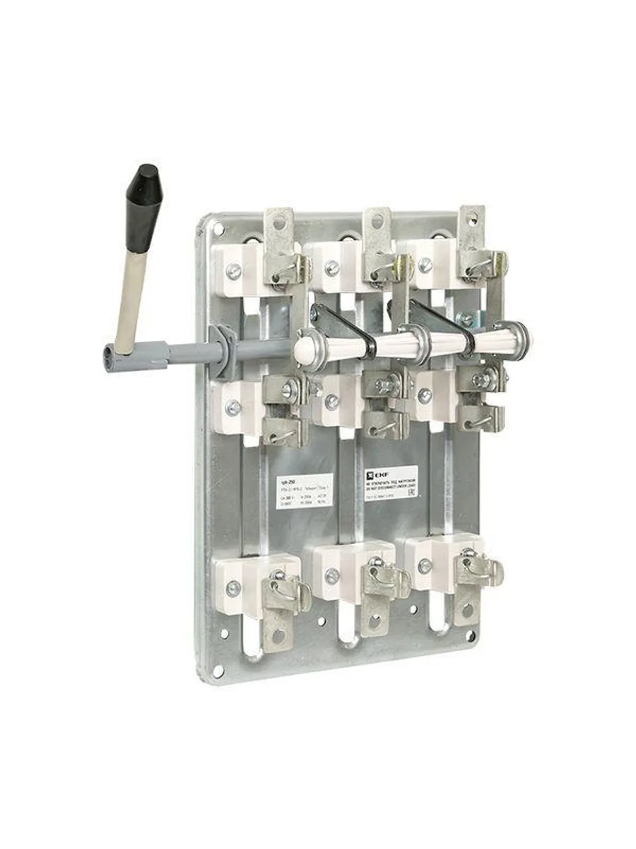 Разъединители-предохранители модели РП (РПБ/РПC) предназначены для пропускания номинальных токов, нечастых и неавтоматических коммутации силовых цепей без нагрузки в устройствах распределения электрической энергии частотой 50 Гц. Аппараты представляют собой трехполюсные разъединители, у которых каждый полюс имеет последовательно соединенный плавкий предохранитель и образует с ним единое устройство на общей панели. В конструкции аппарата применена контактная система ножевого типа с видимым разрывом цепи. Основными частями аппарата являются ножи контактные, вставки плавкие, контактные и шарнирные стойки, смонтированные на общей панели. Необходимое контактное нажатие обеспечивается пружинами на контактных стойках и сферическими шайбами на шарнирных стойках.
