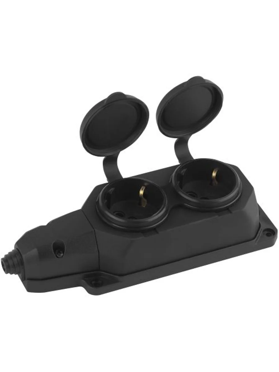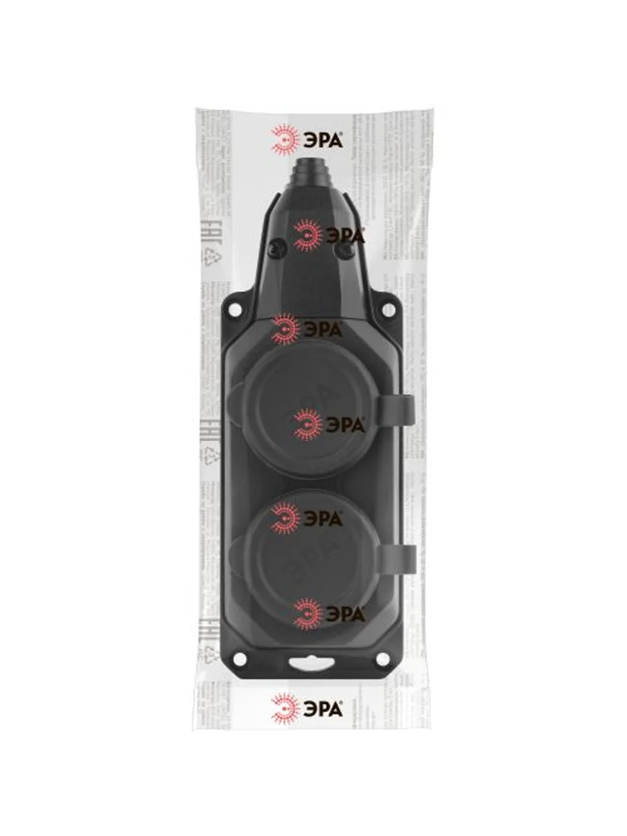 Колодка электрическая каучуковая Эра K-2e-B-IP44 c заземлением, 2 розетки. Корпус выполнен из пыле- и влага- защищенного материала (каучук). Рассчитана на максимальную мощность 16А / 3500 Вт и для подключения кабеля сечением до 2,5 мм2. Электрическая колодка подойдет для тех, кто хочет сделать удлинитель самостоятельно. Также может использоваться как накладные розеточные блоке в подсобных помещениях.