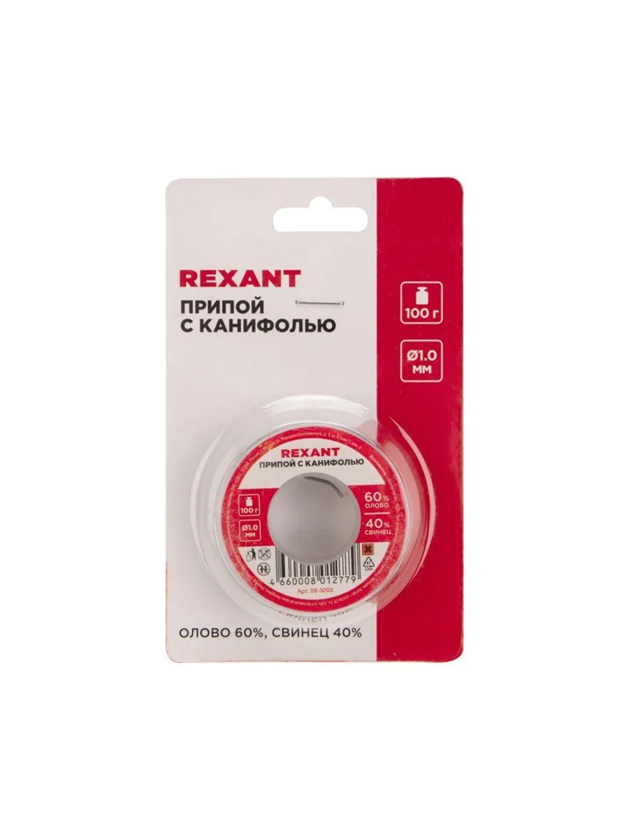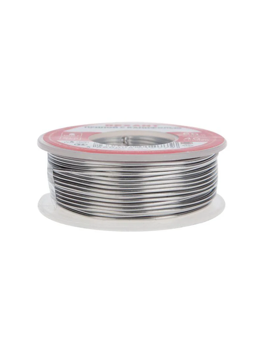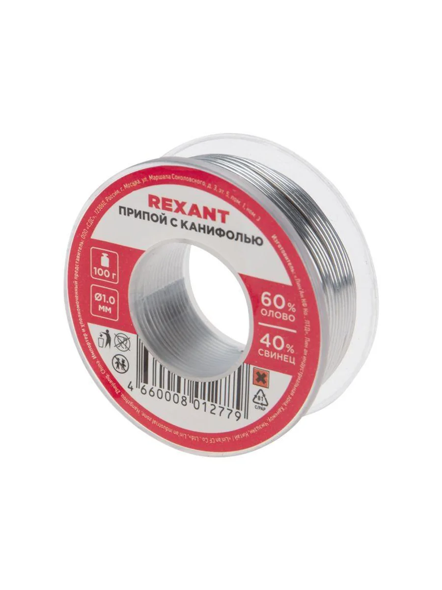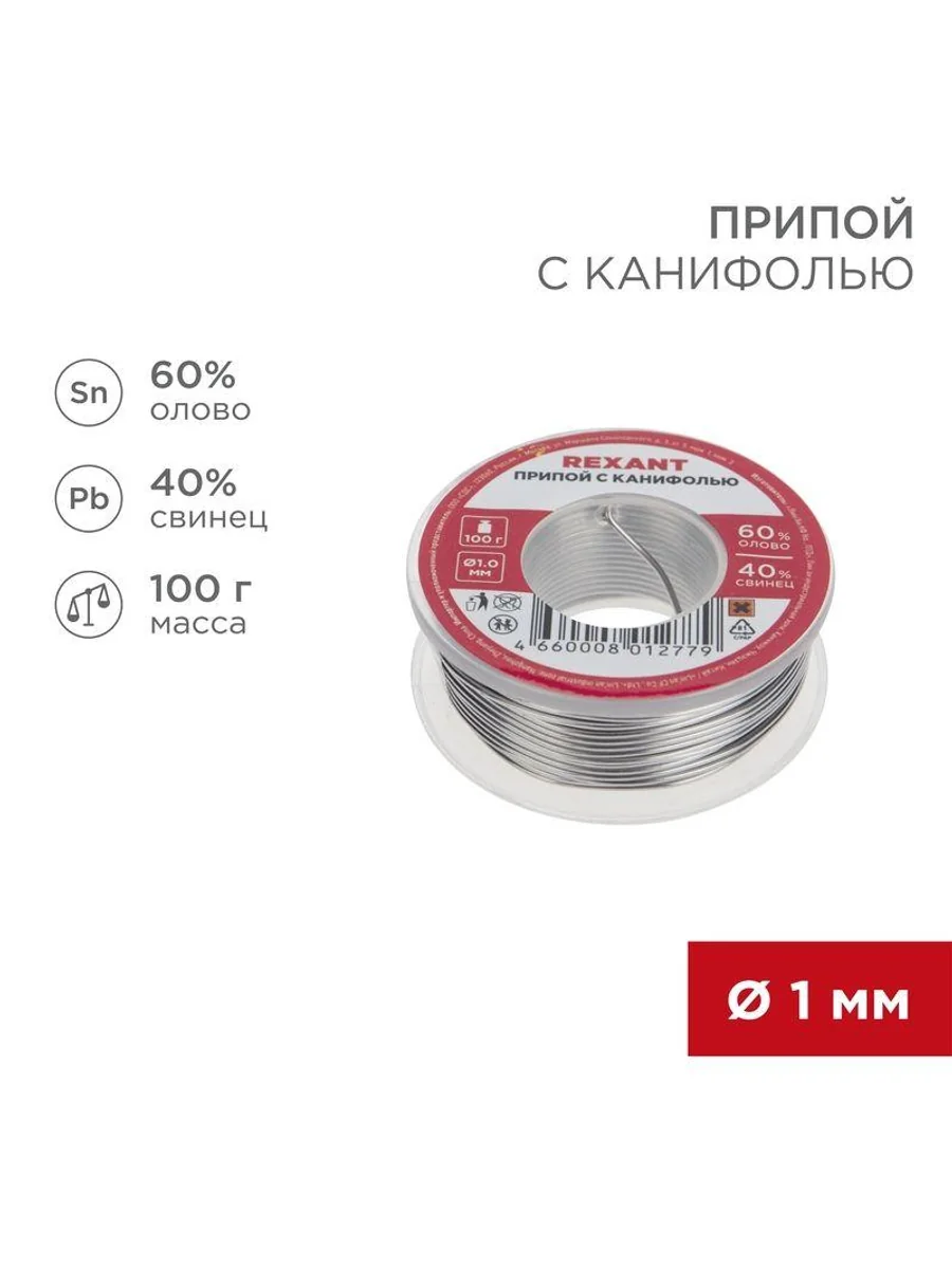 Припой с канифолью REXANT представляет собой проволоку из сплава олова и свинца. Используется в пайке для соединения деталей между собой и позволяет создать герметичный, механически прочный шов. Нагреваясь до температуры плавления, припой растекается по спаиваемому металлу и заполняет полости между соединяемыми элементами. Активный канифольный флюс в составе дополнительно усиливает прочность шва. Убирает окислительную пленку со спаиваемых поверхностей и предупреждает ее дальнейшее появление. Характеристики: Длина проволоки: 15,4 м (±3%) Диаметр проволоки: 1 мм Состав: сплав олова 60% и свинца 40% Содержание канифольного флюса МС-20А в припое: 2,2% Температура плавления: 183...188 °C Вес: 100 г Преимущества: Наличие канифольного флюса в припое Экономичный расход, удобная упаковка Невысокая температура плавления