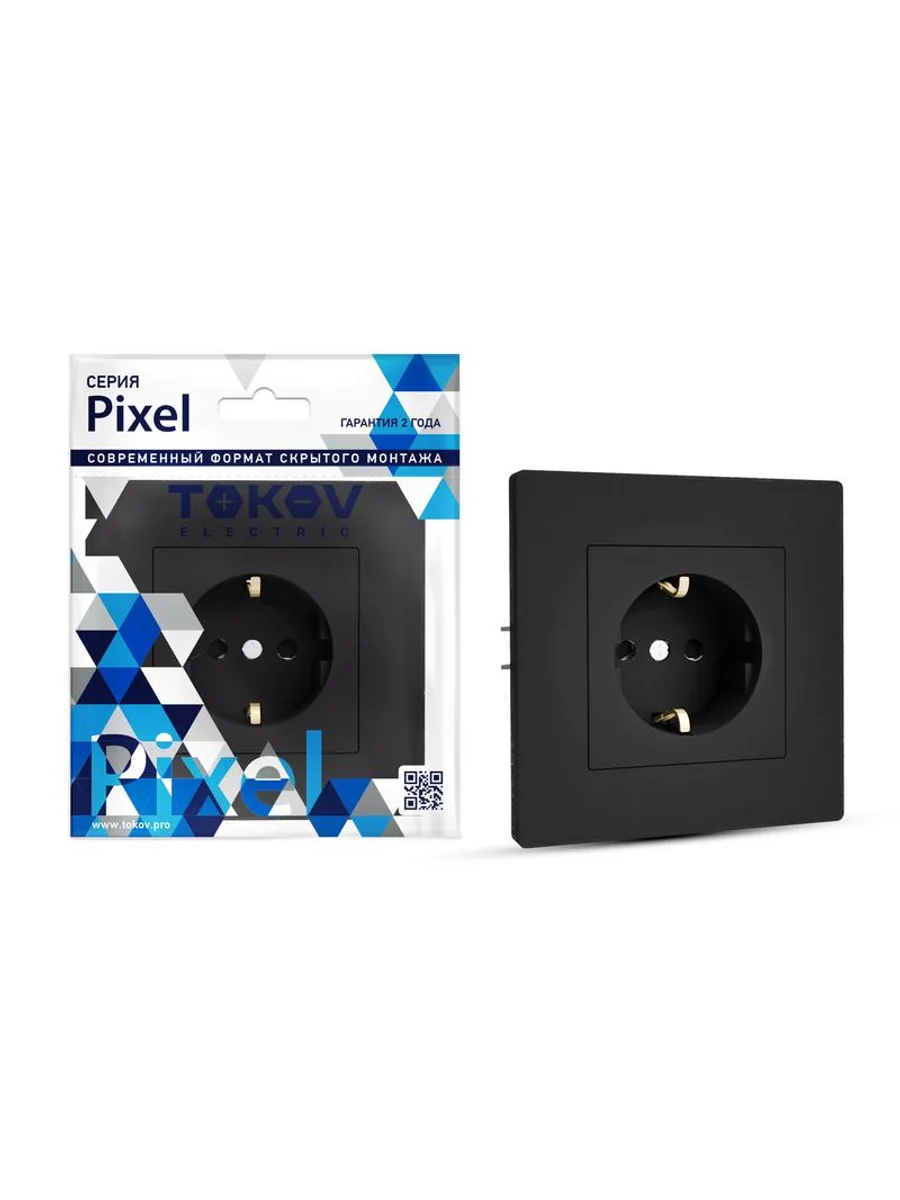 Розетка 1-м СП Pixel 16А IP20 с заземл. защ. шторки в сборе карбон TOKOV ELECTRIC TKE-PX-R1FZSF-C14