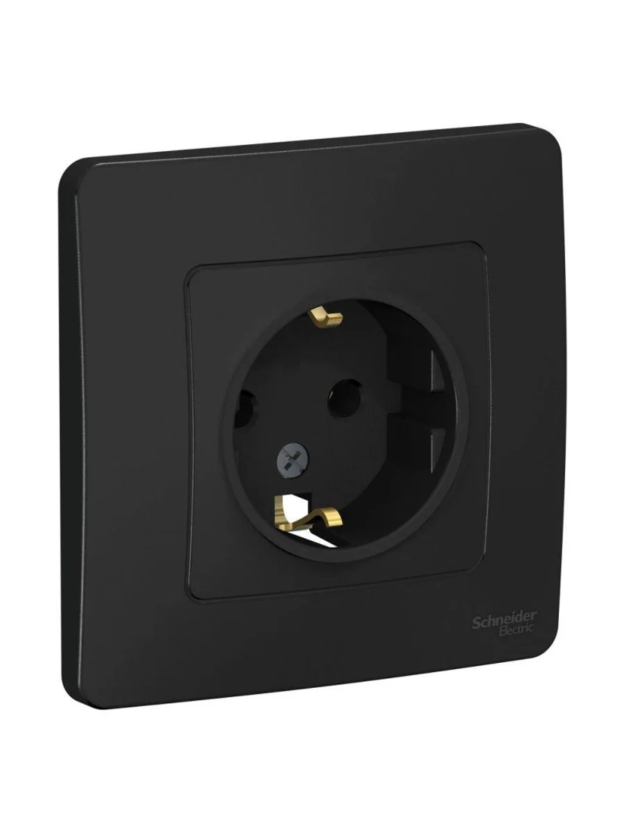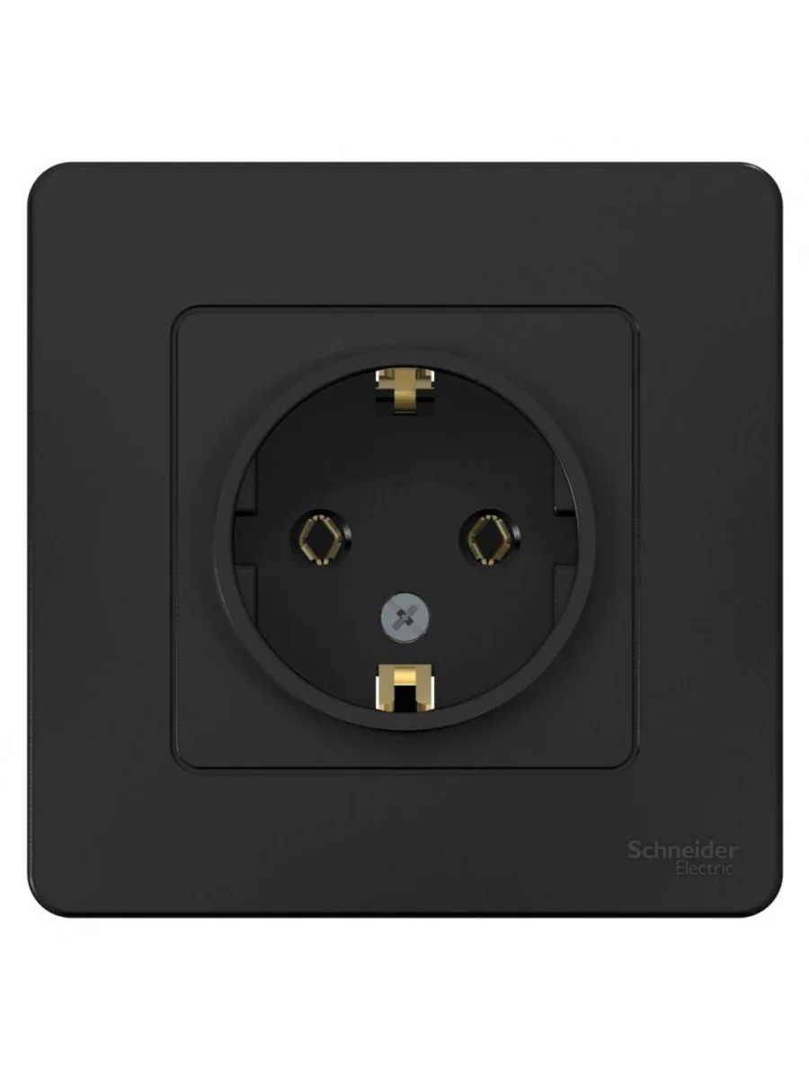 Розетка Systeme Electric (ранее Schneider Electric) BLANCA (антрацит, скрытой установки) одноместная, с заземлением, без шторок предназначена для сетей до 250В, на ток до 16А. Заземление обеспечивает безопасность при косвенном прикосновении. Она изготовлена из ABS-пластика, проста в установке и удобна в применении.