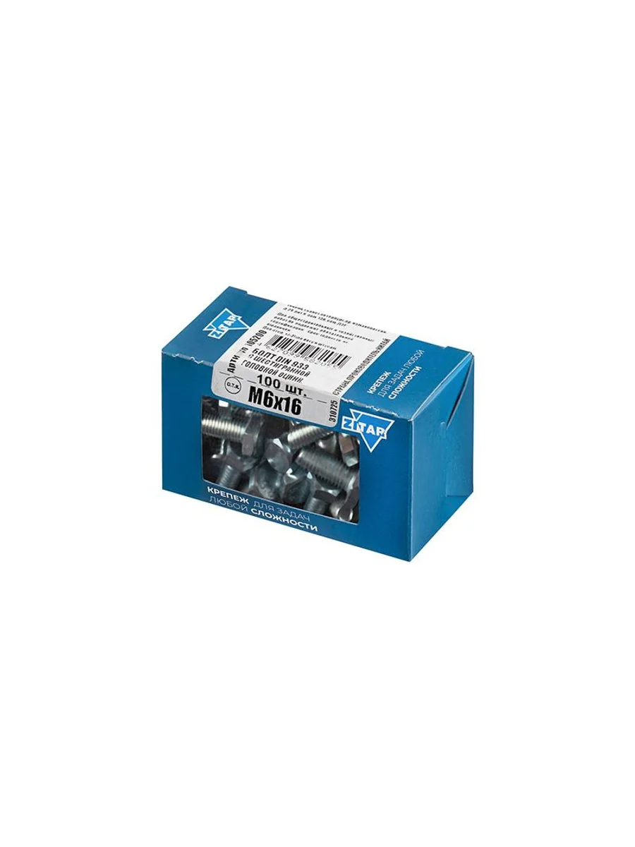 Болт с шестигранной головкой М6х16 DIN 933 кл. прочн. 8.8 оцинк. (коробка) (уп.100шт) Zitar 105200
