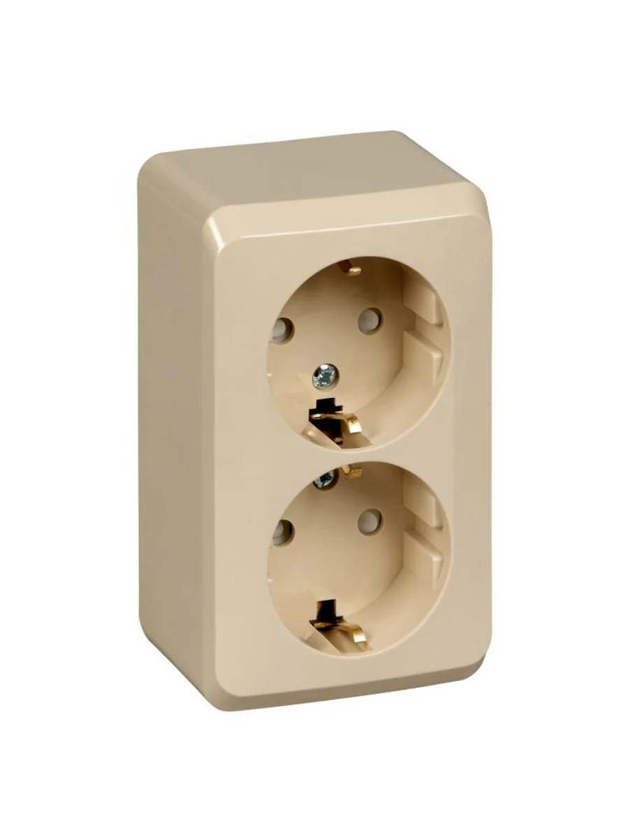 Розетка Systeme Electric (ранее Schneider Electric) ЭТЮД (кремовый, открытой установки) двухместная с заземлением и шторками предназначена для применения в сетях до 250В, на ток до 16А. Двухместная розетка позволяет подключить два устройства в одном месте. Шторки и заземление обеспечивают дополнительную безопасность при косвенных прикосновениях. Сделано в России.