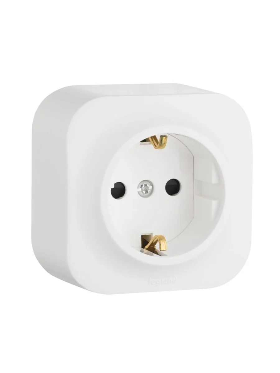 Розетка с заземлением и защитными шторками QUTEO для открытого монтажа. Применяется в зданиях, оборудованных для повышения безопасности проводкой с заземлением (с защитным проводником). Рекомендуются к применению в помещениях в которых могут быть дети. Шторки осуществляют защитную функцию путём ограничения доступа к токоведущим контактам. Доступ открывается только при подключении вилки.