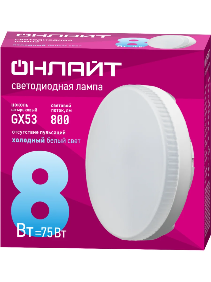 Лампа светодиодная 61 132 OLL-GX53-8-230-6.5K 8Вт таблетка 6500К холод. бел. GX53 640лм 220-240В ОНЛАЙТ 61132 - купить в KeepBuilding | KeepBuilding