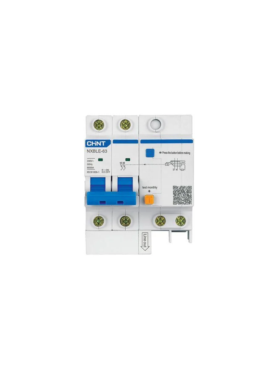 Автоматические выключатели дифференциального тока (АВДТ) серии NXBLE-63 предназначены для применения в сетях переменного тока напряжением до 400 В частотой 50/60 Гц с номинальным током до 63 А для нечастых включений и отключений нагрузок, а также защиты от перегрузки, короткого замыкания, поражения электрическим током при косвенных прикосновениях и возгораний по причине утечки тока в электроустановках жилых, общественных и промышленных зданий. Необходимо проверять работоспособность АВДТ серии NXBLE-63 нажатием на кнопку «Тест» не реже 1 раза в месяц. Основные характеристики: Номинальный ток – от 6 А до 63 А Исполнение по числу полюсов – 1P+N; 2P; 3P; 3P+N; 4P Тип характеристики мгновенного срабатывания – В, С, D Отключающая способность – до 6000 А Ном. отключающий дифференциальный ток – 30 мA; 100 мA; 300 мA Тип АВДТ – AC Конструктив устройства – электронный Механическая износостойкость – 20000 циклов В/О Электрическая износостойкость – 10000 циклов В/О Степень загрязнения – 2 Степень защиты – IP20 Монтаж – на симметричную DIN-рейку 35 мм Подключение нагрузки – снизу Сигнализация – окошко индикации положения главных контактов АВДТ серии NXBLE-63 дополнительно могут оснащаться следующими устройствами: - вспомогательный контакт состояния AX-X1; - сигнальный контакт аварийного срабатывания AL-X1; - независимый расцепитель SHT-X1 или расцепитель минимального/максимального напряжения (OUVT-X1; UVT-X1; OVT-X1).