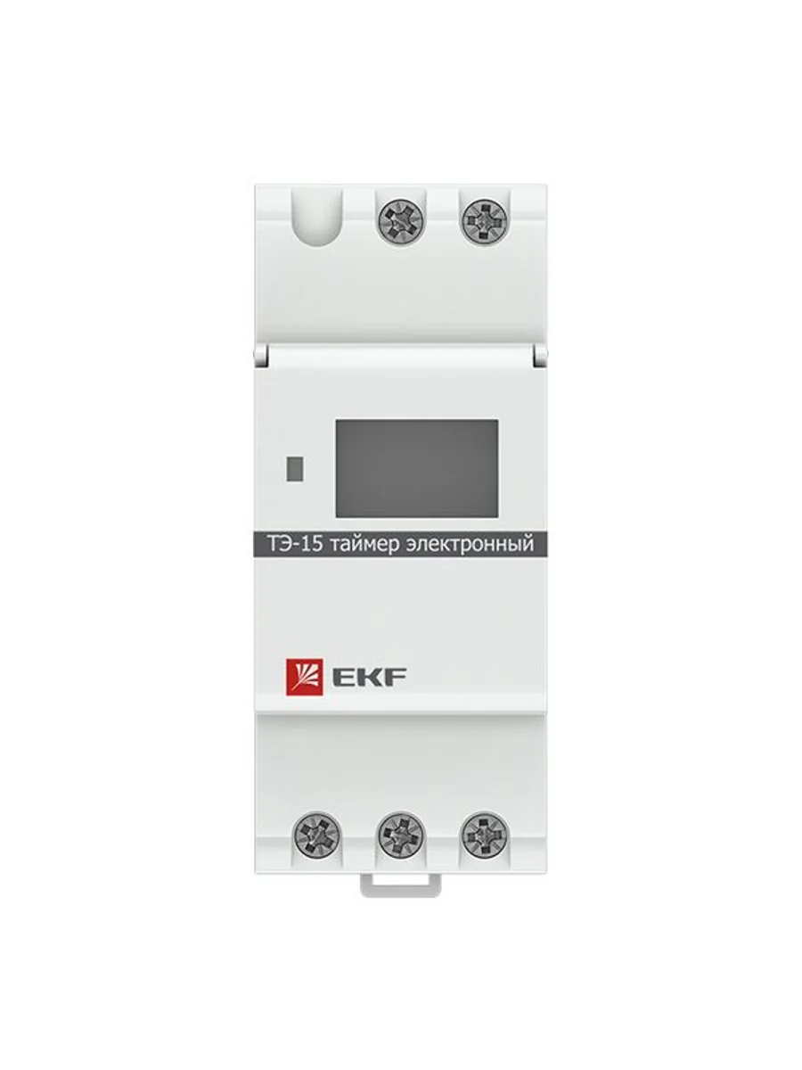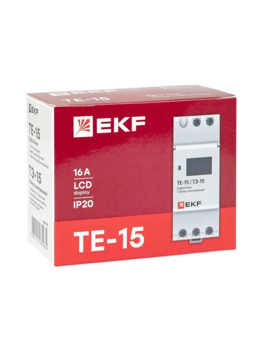 Таймер электронный с ЖК-дисплеем серий ТЭ-15 EKF PROxima представляет собой реле, момент срабатывания которого (включения/отключения) задается установкой необходимого времени суток. Таймер ТЭ-15 EKF PROxima имеет в своем составе часы, что позволяет отслеживать текущее время. Изделие соответствует ГОСТ Р53994.2.7-2010 (МЭК60730-2-7:2008). Преимущества: 1. Установка до 16 программ на включение и отключение 2. Информативный дисплей 3. Часы реального времени 4. Защитная крышка дисплея и кнопок 5. Возможность регулировки предустановки интервала времени 6. Возможность ручного управления реле 7. Встроенное перекидное реле С/О с номинальным током 16А 8. Напряжение питания 230 V АС