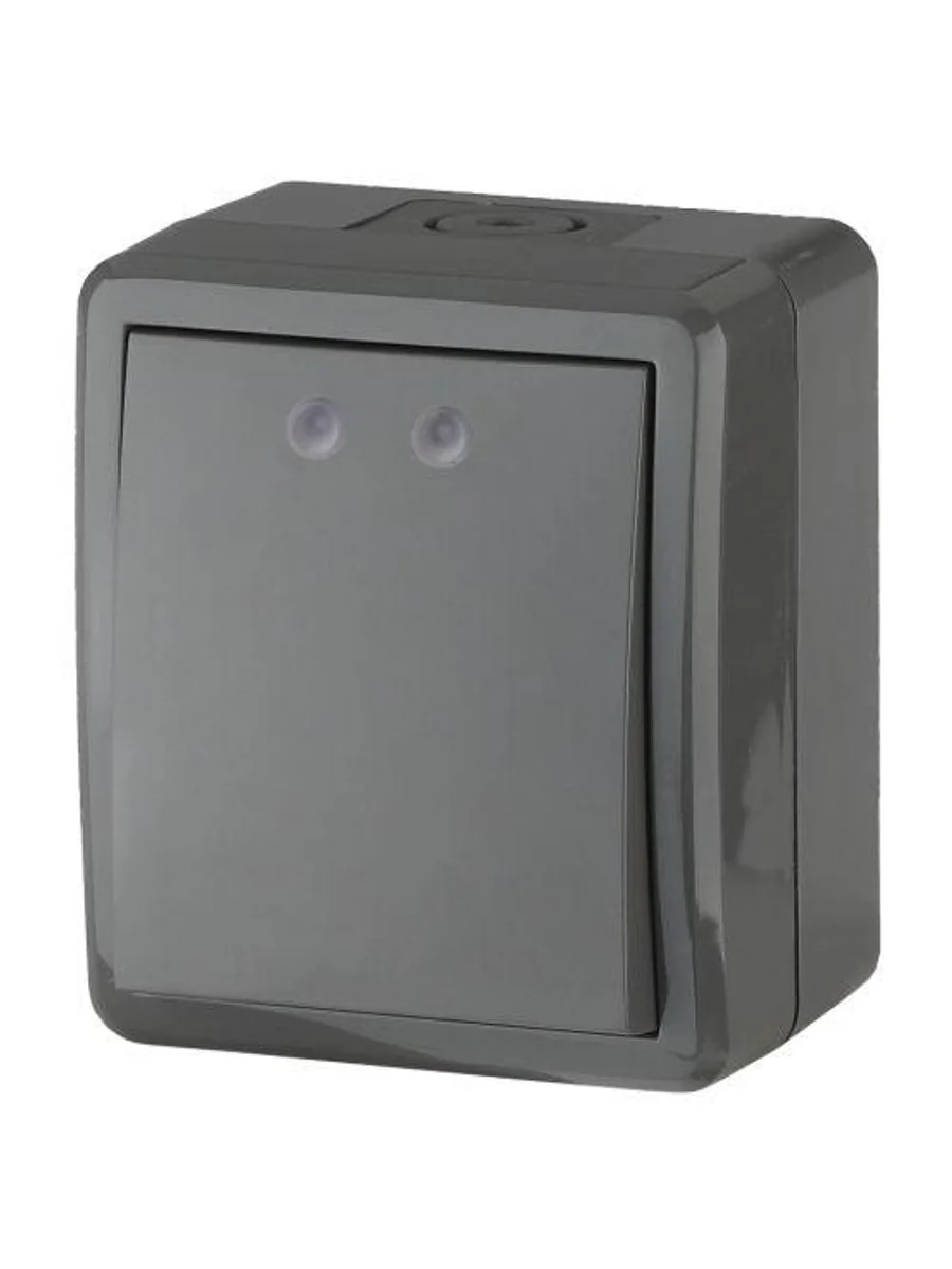 Выключатель влагозащищённый IP54 1-клавишный серии Эра Эксперт открытой уст. цвет серый 11-1401-03. Номинальные характеристики. Выключатель выполнен из качественного поликарбоната, оснащён уникальными винтовыми клеммами ЭКСПЕРТ для максимально качественного зажима кабеля в механизме.