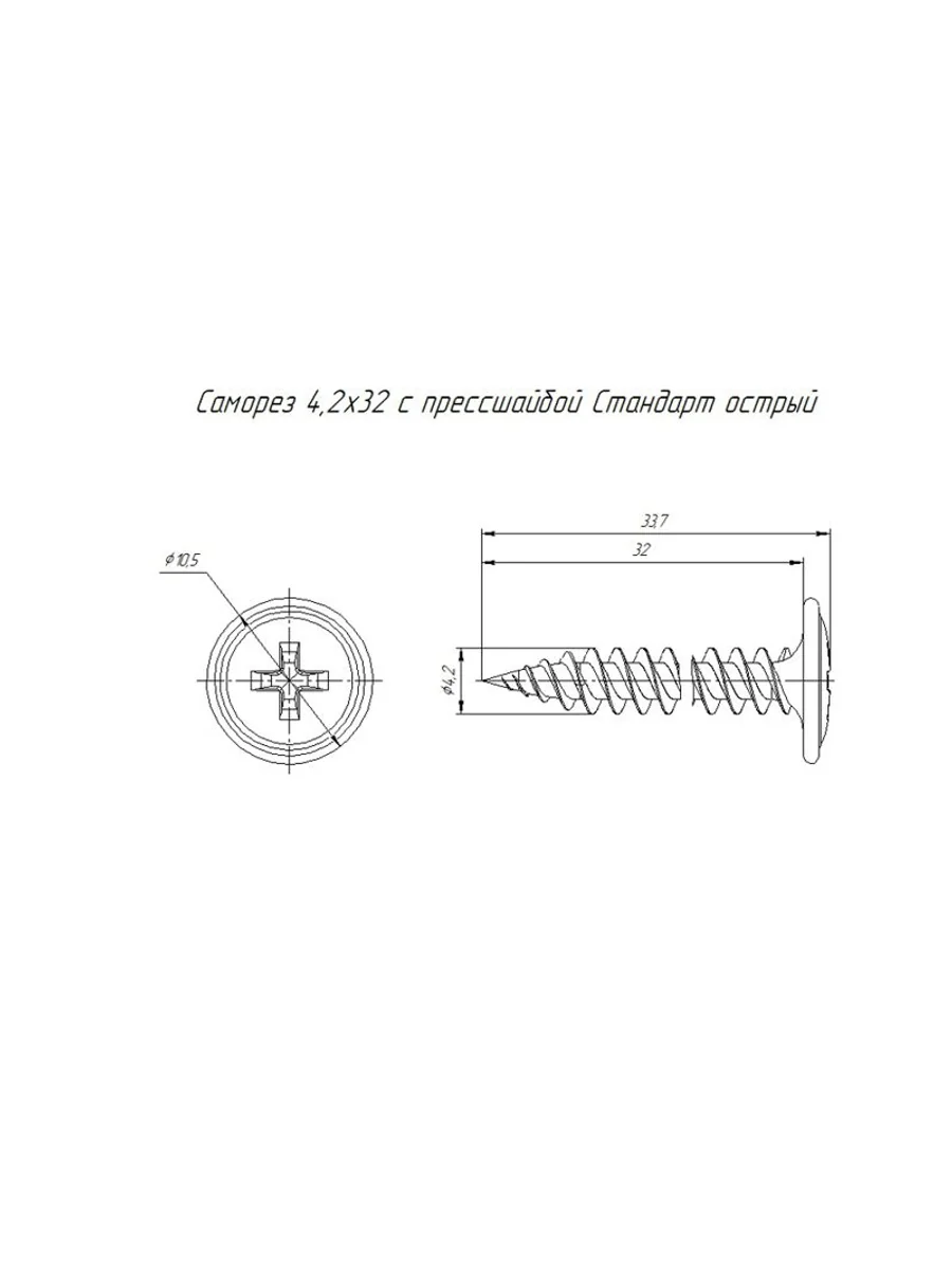 Саморез 4.2х32 с прессшайбой острый цинк (уп.500шт) Промрука | KeepBuilding