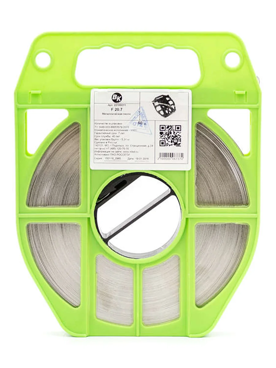 Металлическая лента ВК F20.7-201 в м уп. 10 м 22100081 применяется для крепления анкерных и подвесных кронштейнов вокруг металлических, железобетонных и деревянных опор при помощи инструмента CVF, OPV, OPV-2.