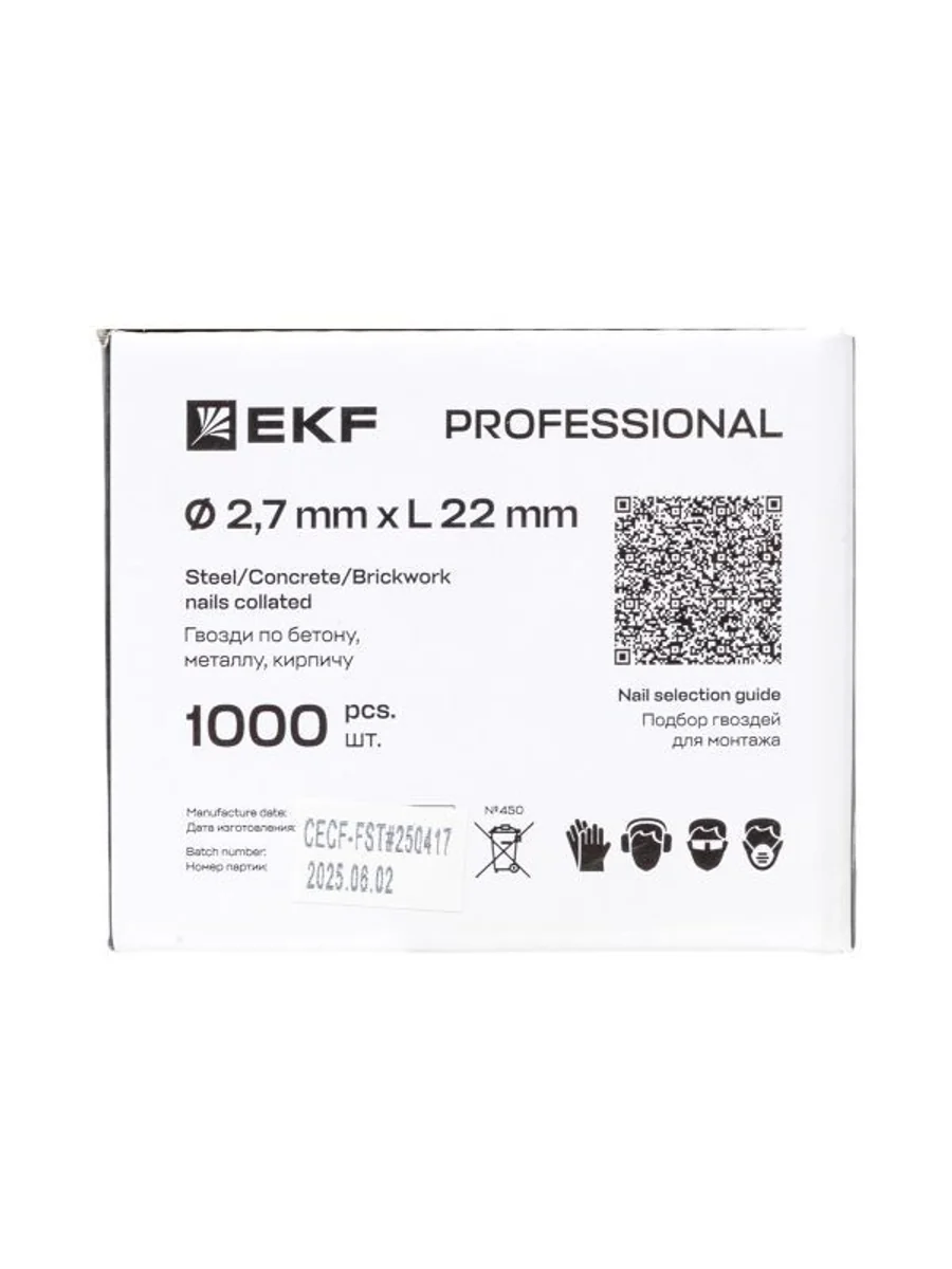 Гвозди по бетону, металлу, кирпичу предназначены для моментальной пристрелки элементов крепления с помощью монтажного пистолета. Диаметр стержня - 2,7 мм, длина гвоздя - 22 мм. Стержень гладкий, прямой. Форма наконечника - остроугольная, без "баллистического" скругления. Покрытие - чернение.