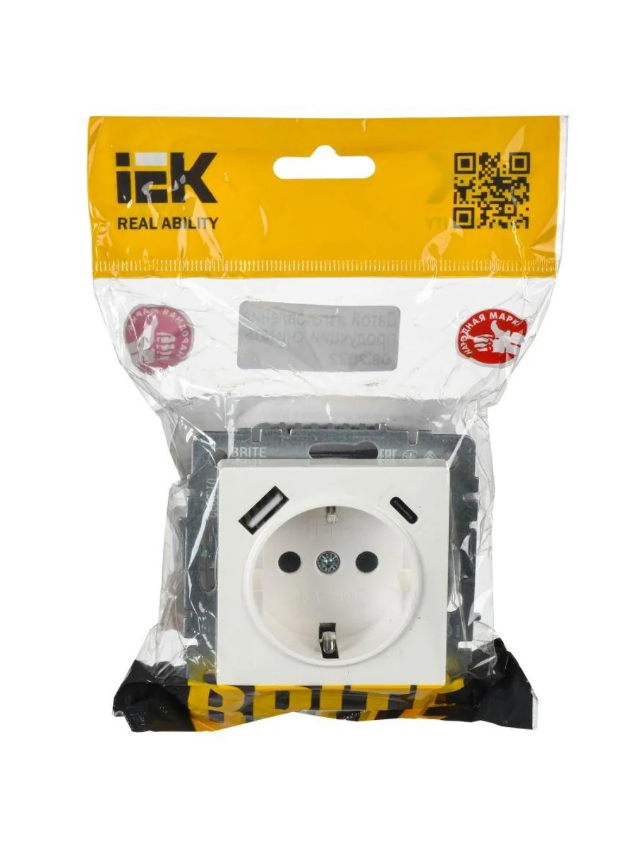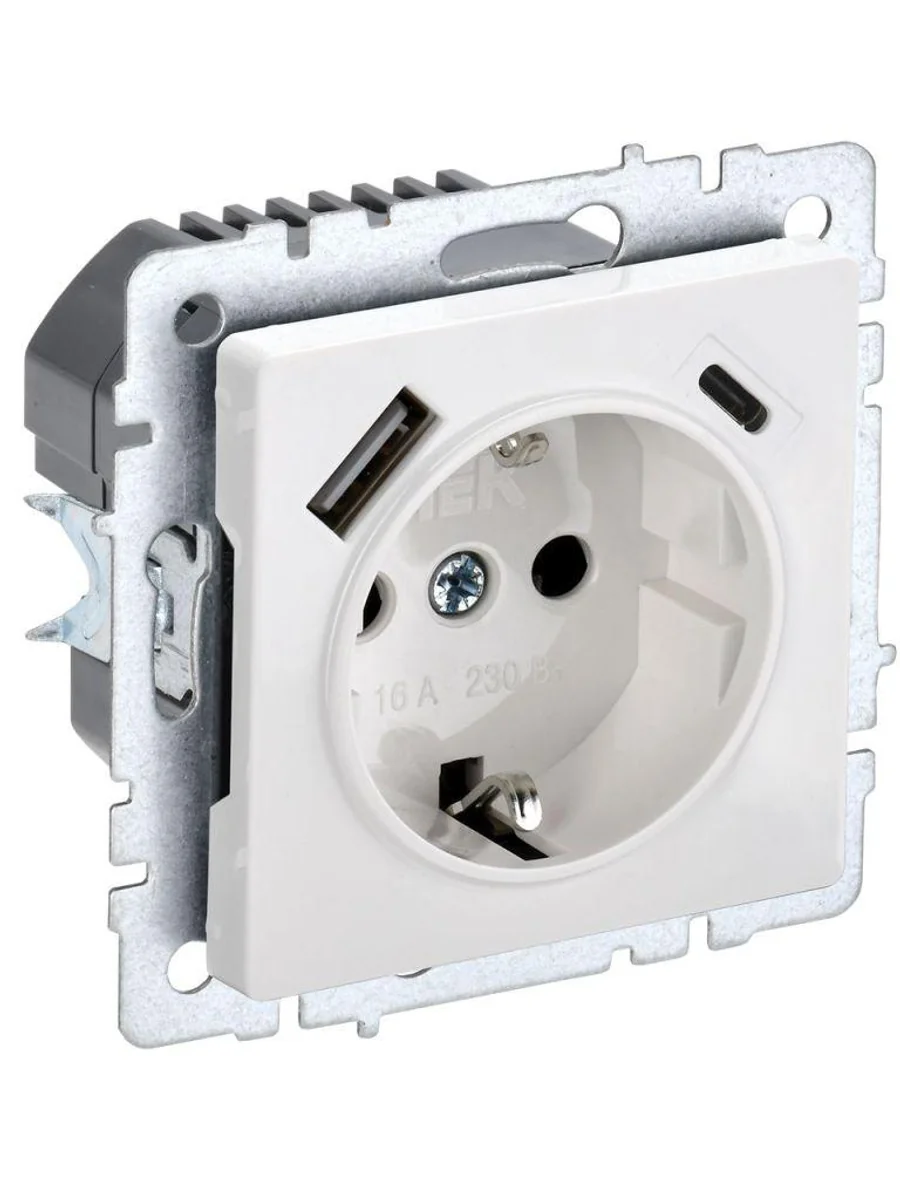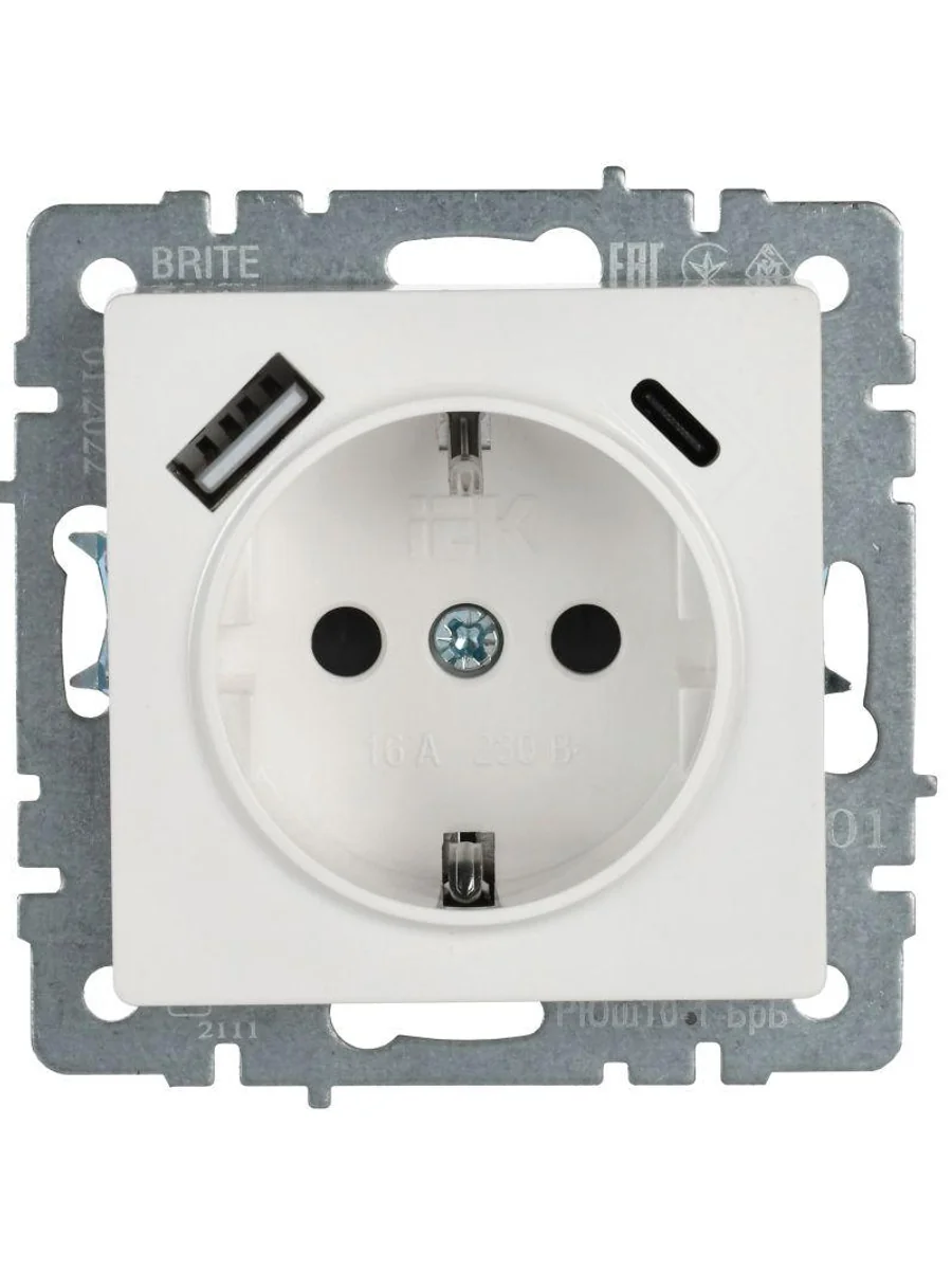 Розетка BRITE РЮш11-1-БрБ 16А с USB A+C 18Вт с заземл. защ. шторки механизм бел. IEK BR-R14-16-U22-018-K01 - купить в KeepBuilding | KeepBuilding