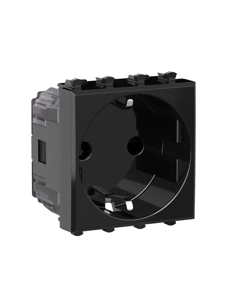 Розетка электрическая с заземлением, со шторками и возможностью установки подсветки, модульная. Предназначена для монтажа в систему кабельных коробов "In-liner Front", систему алюминиевых кабельных коробов и колонн "Aero", лючки и башенки BUS при помощи рамок-суппортов и каркасов "Avanti" (код 4400912 и т.д.); подключение оргтехники, бытовых приборов и т. д. Характеристики: диаметр отверстий для ввода кабелей – 3 мм (по 2 отверстия на одну клемму); винтовые зажимы; защитные шторки; шаблон для зачистки кабеля – 11 мм; номинальный ток – 16 A; номинальное напряжение – 230 В; фиксация в подрозеточные коробки глубиной не менее 45 мм при помощи каркаса с лапками (код 4400802) и саморезов. 2 модуля. Цвет: "Черный квадрат". Производитель оставляет за собой право вносить во внешний вид изделия изменения, которые не влияют на его функционал, безопасность и надежность.