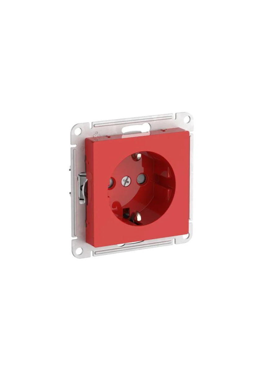 Механизм с быстрозажимными клеммами Systeme Electric (ранее Schneider Electric) серии AtlasDesign в красном цвете розетки одинарной с заземлением и со шторками подходит для сетей 250 В, на ток 16 А. С помощью новых быстрозажимных клемм монтаж розеток и выключателей стал намного быстрее. Теперь подключение не требует использования отвертки. Лицевые детали из качественного ABS-пластика, устойчивого к царапинам и УФ-излучению.