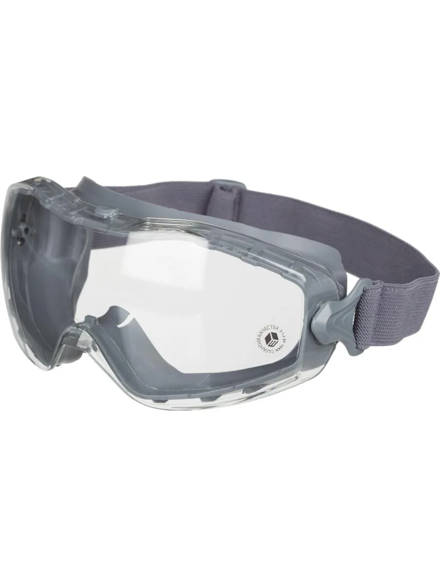 Защитные закрытые очки с непрямой вентиляцией. Инновационная конструкция очков: быстрая сборка/разборка очков, где крепление наголовной ленты соединяет линзу с обтюратором. Двухкомпонентный мягкий обтюратор обеспечивают панорамный обзор, удобную посадку и возможность использования с другими СИЗ: касками, наушниками, фильтрующими полумасками и корригирующими очками. Любой цвет обтюратора по каталогу RAL помогает следовать корпоративному стилю. Есть возможность нанесения логотипа на ленту снаружи и силиконовое покрытие на обратной стороне для уменьшения скольжения (в частности, на каске). Оптический класс защиты №1. Защита от воздействия высокоскоростных частиц при экстремальных температурах: среднеэнергетический удар (B) 120 м/с, (5,90 Дж) – ГОСТ 12.4.253-2013. Устойчивость к адгезии расплавленных металлов и проникновению горячих твердых тел (9). Области применения: жидкости (3) и грубодисперсные аэрозоли (4) – ГОСТ 12.4.253-2013. Твердое двустороннее покрытие линзы с защитой от истирания мелкодисперсными аэрозолями (K) и запотевания (N) – ГОСТ 12.4.253-2013. Срок годности – 3 года с даты изготовления. Вес очков – 80 гр.