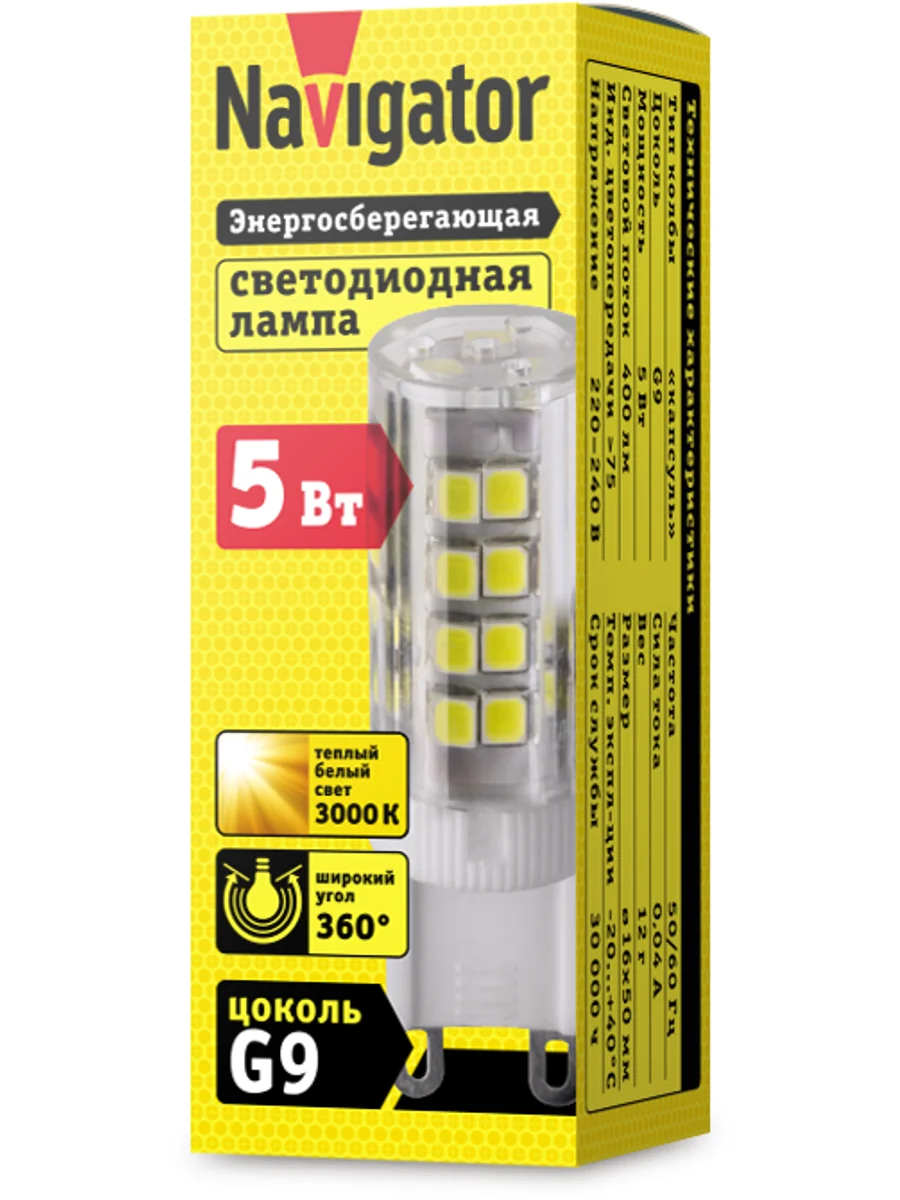 Лампа светодиодная 71 266 NLL-P-G9-5-230-3K 5Вт капсульная 3000К тепл. бел. G9 400лм 220-240В Navigator 71266 - купить в KeepBuilding | KeepBuilding