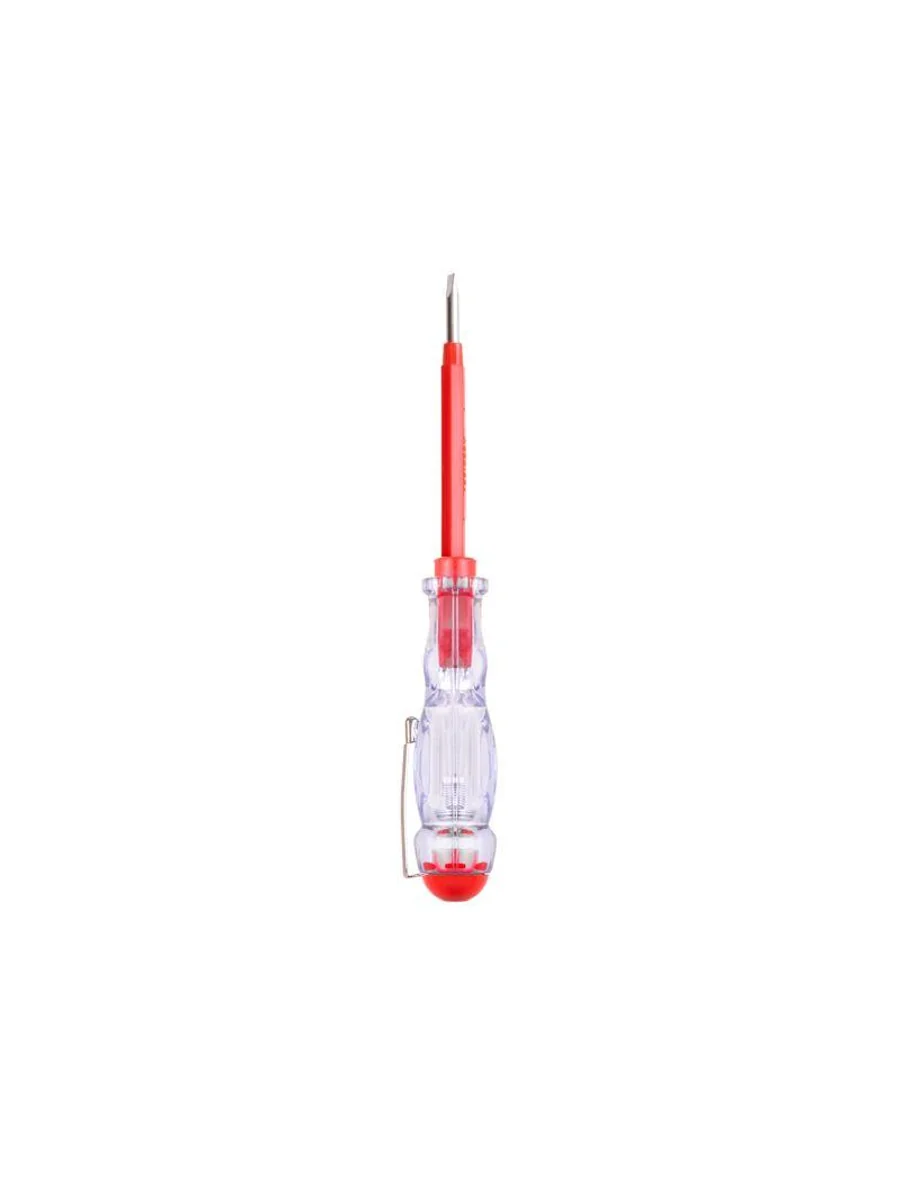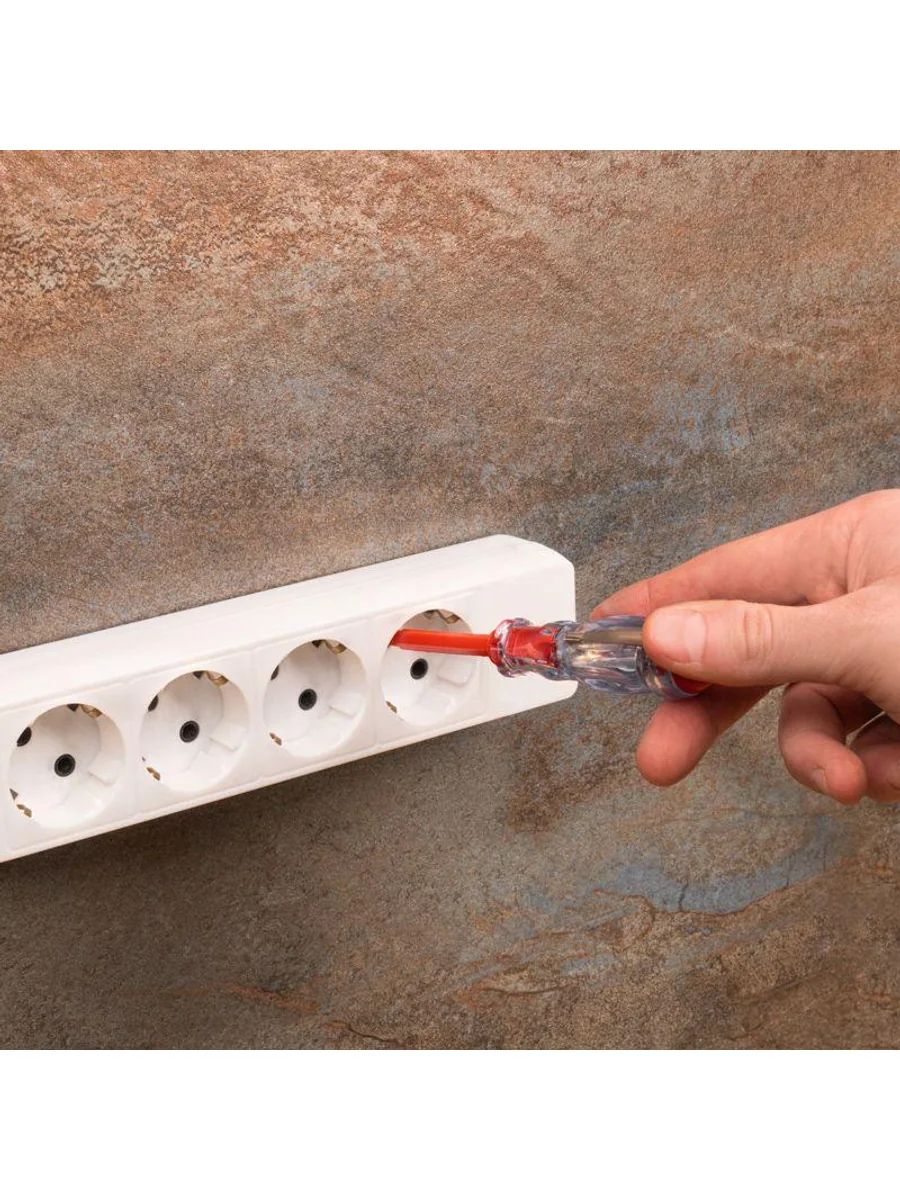 Тестер-пробник R-16 предназначен для быстрой и эффективной диагностики электрооборудования. Прибор обладает световой индикацией, которая позволяет оператору легко определить наличие электрического напряжения. Тестер оснащен переставным жалом, которое может быть использовано в двух вариантах: крестообразное или шлицевое. Это позволяет оператору выбрать подходящий тип жала в зависимости от требований конкретной ситуации. Сталь высокой закалки (50HRC) позволяет использовать тестер как отвертку. Наличие намагниченных наконечников обеспечивает удобство при удержании винтов, что особенно полезно при работе с клеммными колодками и светильниками. Рукоятка и жало прибора изолированы для безопасности при работе с электрическими компонентами. Наконечник тестера напрямую контактирует с линией провода, что обеспечивает точную и надежную диагностику электрооборудования. Прочный и долговечный корпус детектора изготовлен из ударопрочной пластмассы. Цвет – красный. Изделие поставляется в коробке по 10 шт.