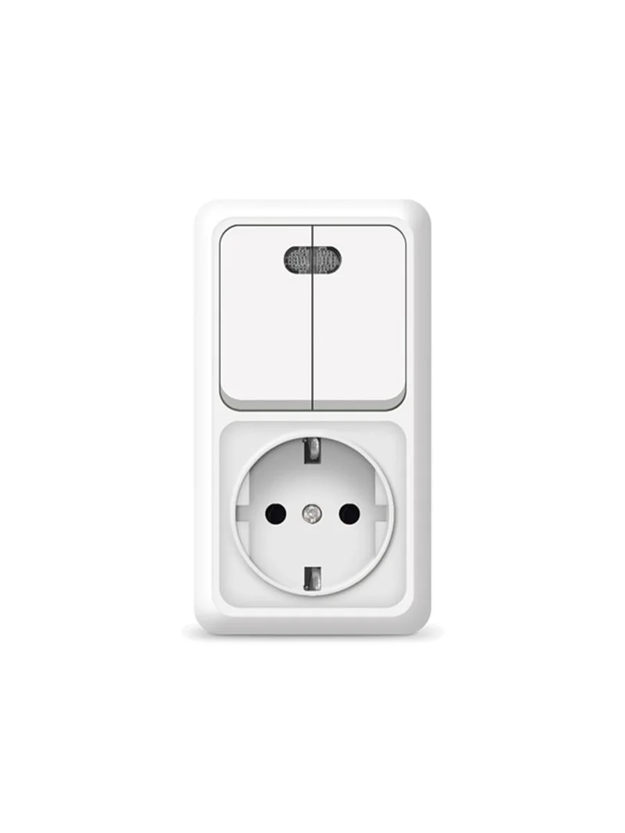 Блок ОП Олимп 2-кл. вык. с подсветкой + роз. с заземл. верт. бел. UNIVersal О0041 представлен потребителю в серии "Олимп". Серия "Олимп" для открытой установки сочетает в себе функциональность с практичностью. Изделия данной серии удачно вписываются в интерьер любого помещения и производят приятное впечатление. Блок объединяет двухклавишный выключатель и розетку. Корпус представляет собой форму из пластика, белого цвета. Контактная группа изделий изготовлена из латуни. Монтируется вертикально, на глубину 48 мм, на поверхность стены. Рекомендованы для жилых помещений и административных зданий. Срок службы составляет 5 000 циклов включения/отключения.