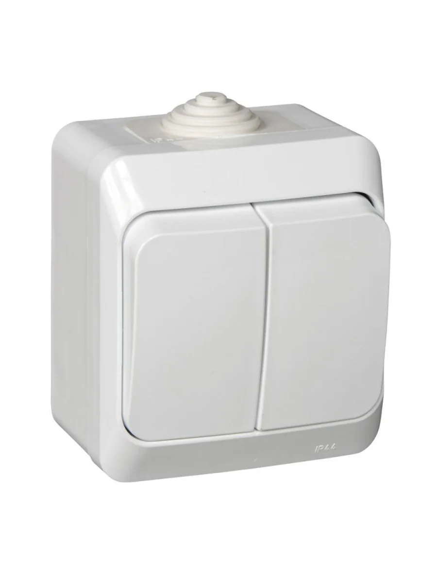 Выключатель Systeme Electric (ранее Schneider Electric) ЭТЮД (белый, открытой установки) двухклавишный предназначен для применения в сетях до 250В, на ток до 10А. Выключатель подходит для большинства типов ламп, включая люминесцентные. Две клавиши позволяют управлять двумя источниками света с одной точки. Он удобен в применении и отлично подходит для ванной комнаты (IP44). Сделано в России.