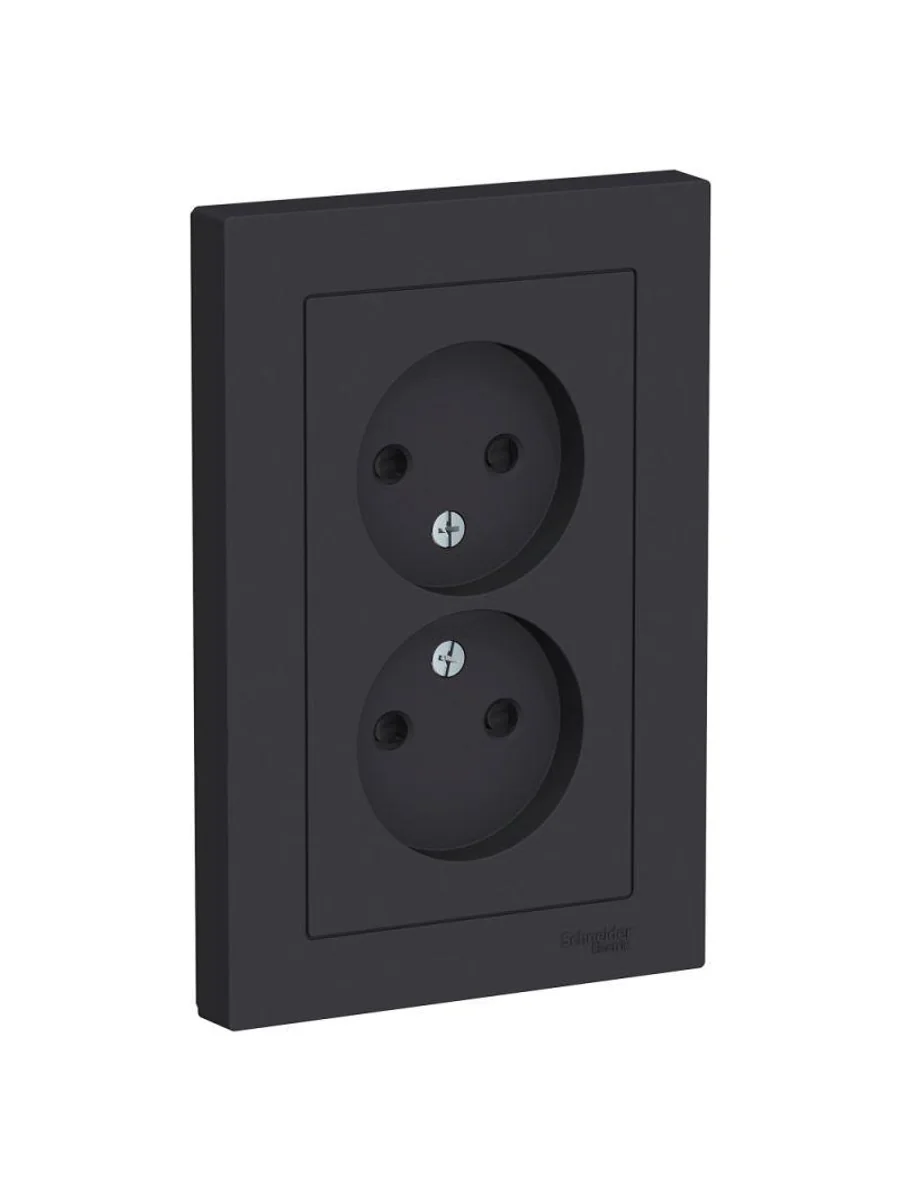 Розетка двойная в сборе Systeme Electric (ранее Schneider Electric) серии AtlasDesign в цвете карбон без заземления со шторками подходит для сетей 250 В, на ток 16 А. Лицевые детали из качественного ABS-пластика, устойчивого к царапинам и УФ-излучению. Двойная розетка позволяет подключить два устройства в одном месте. Изделие поставляется в комплекте с рамкой того же цвета. Благодаря покрытию «soft touch» к изделию приятно прикасаться.