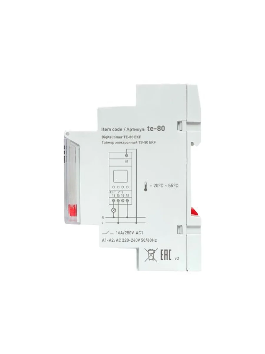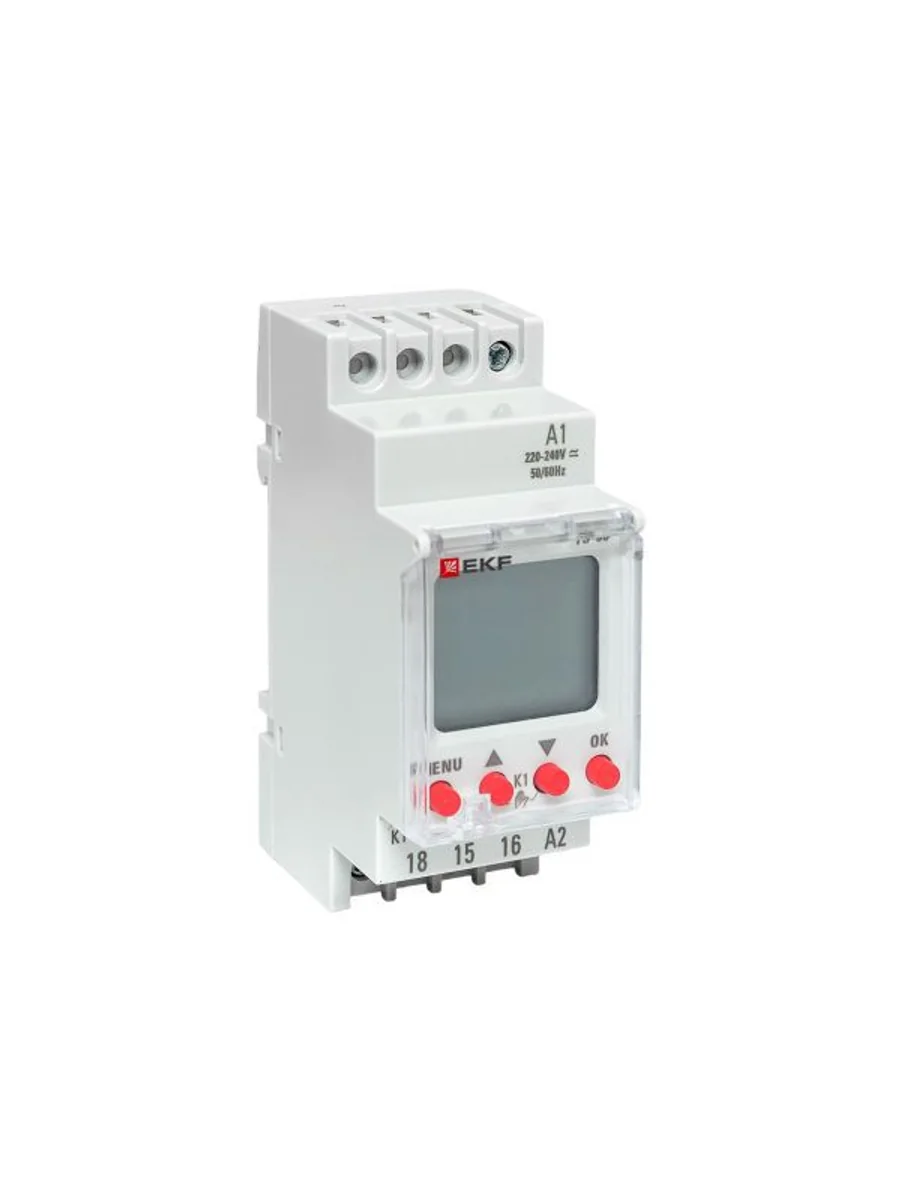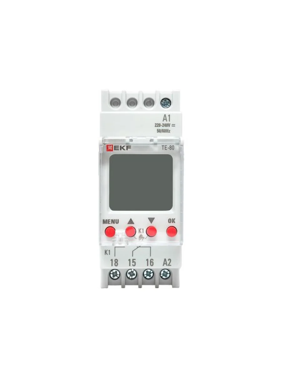 Таймеры электронные с ЖК-дисплеем серий ТЭ-80 EKF PROxima представляют собой реле, момент срабатывания которого (включения/отключения) задается установкой необходимого времени суток и дня недели. Таймеры имеют в своем составе часы, что позволяет отслеживать текущее время. К тому же таймеры снабжены функцией импульс, что позволяет формировать импульс длиной 1–99 секунд. Данную функцию, к примеру, можно использовать для подачи школьных звонков. Изделие соответствует ГОСТ IEC 60730-2-7-2011. Преимущества: 1. Задание до 80 программ 2. Информативный дисплей 3. Часы реального времени 4. Защитная крышка дисплея и кнопок с возможностью опломбировки 5. Возможность регулировки предустановки интервала времени 6. Возможность ручного управления реле 7. Встроенное перекидное реле С/О с номинальным током 16А 8. Напряжение питания 230 V АС