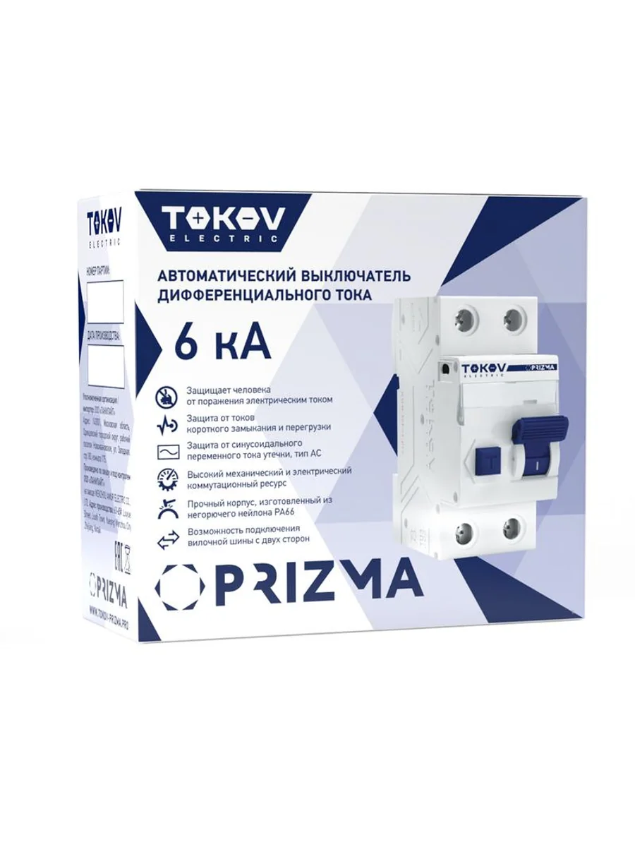 Выключатель автоматический дифференциального тока 2п (1P+N) C 16А 30мА тип AC 6кА PRIZMA TOKOV ELECTRIC TKE-PZ60-RCBO-2-16-30-AC - купить в KeepBuilding | KeepBuilding