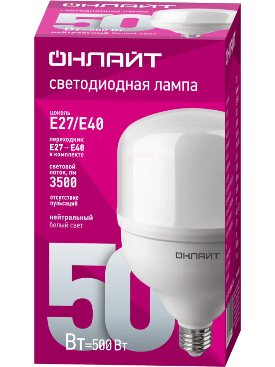 Лампа светодиодная высокомощная 82 904 OLL-T125-50-230-840-E27Е40 50Вт 4000К нейтр. бел. E27/E40 3500лм 176-264В ОНЛАЙТ 82904