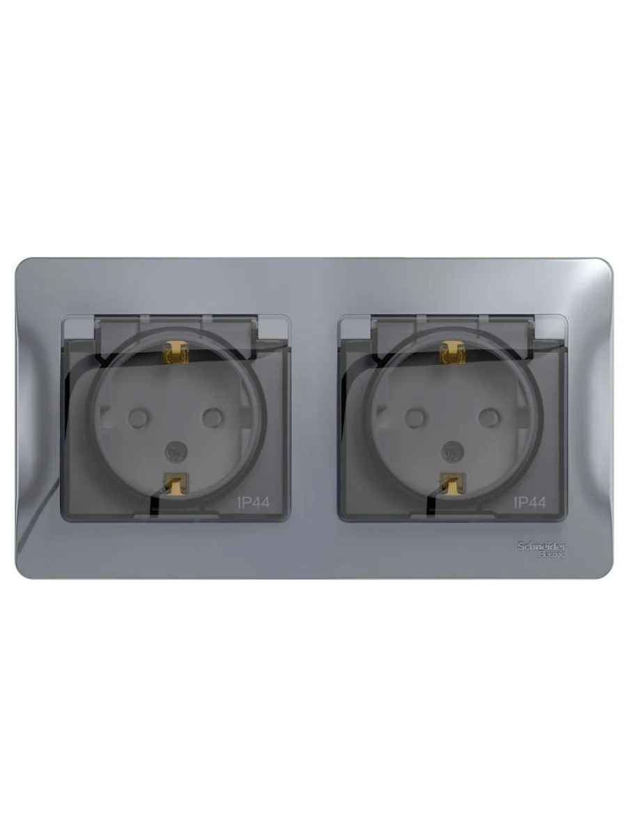 Розетка Systeme Electric (ранее Schneider Electric) серии Glossa (в сборе, цвет алюминий) двойная с заземлением, шторками и крышкой подходит для сетей 250 В, на ток 16 А. - Изделие со степенью защиты IP44 обеспечит безопасность использования в ванной и на кухне. - Заземляющий контакт обеспечивает дополнительную защиту от удара электрическим током. При наличии заземления электрический потенциал уходит в землю, защищая человека. - Выполнен из материала PС+ASA, стойкого к УФ-излучению и появлению царапин.