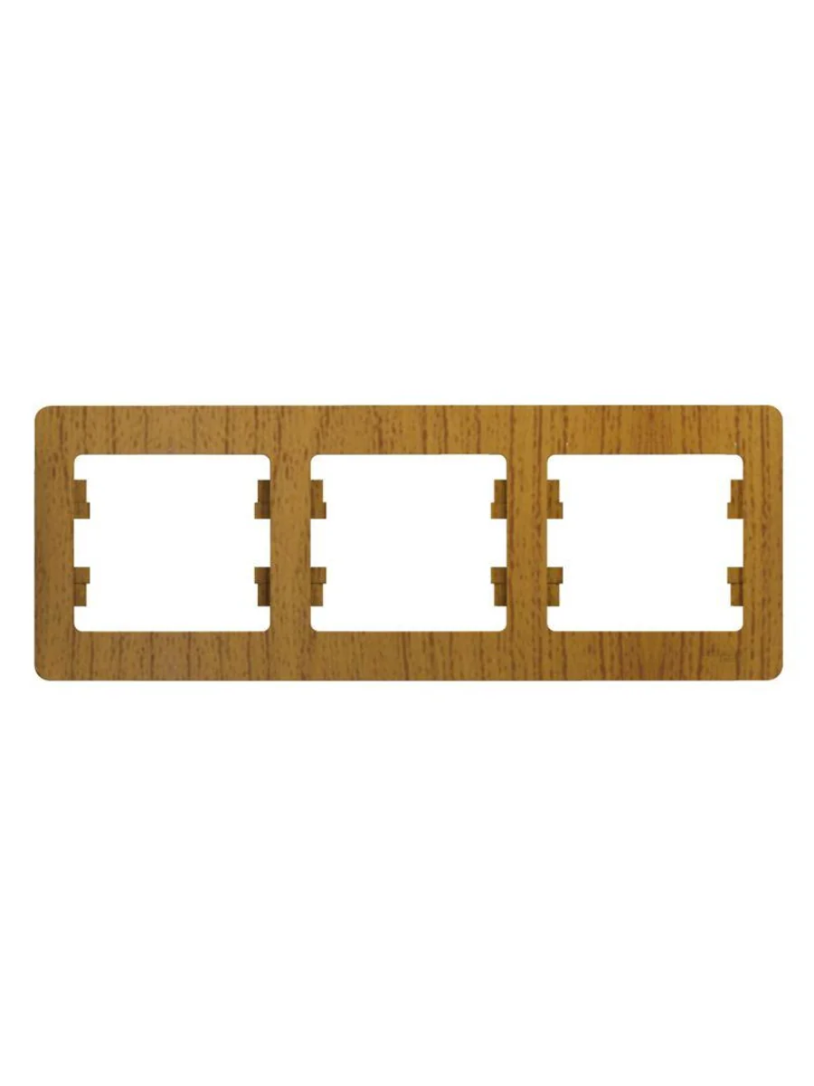 Рамка Systeme Electric (ранее Schneider Electric) серии Glossa (цвет дерево дуб) трёхместная. - Устанавливается в горизонтальном положении. - Выполнена из материала PС+ASA, стойкого к УФ-излучению и появлению царапин. - Позволяет гармонично вписать электроустановочное изделие в интерьер помещения.
