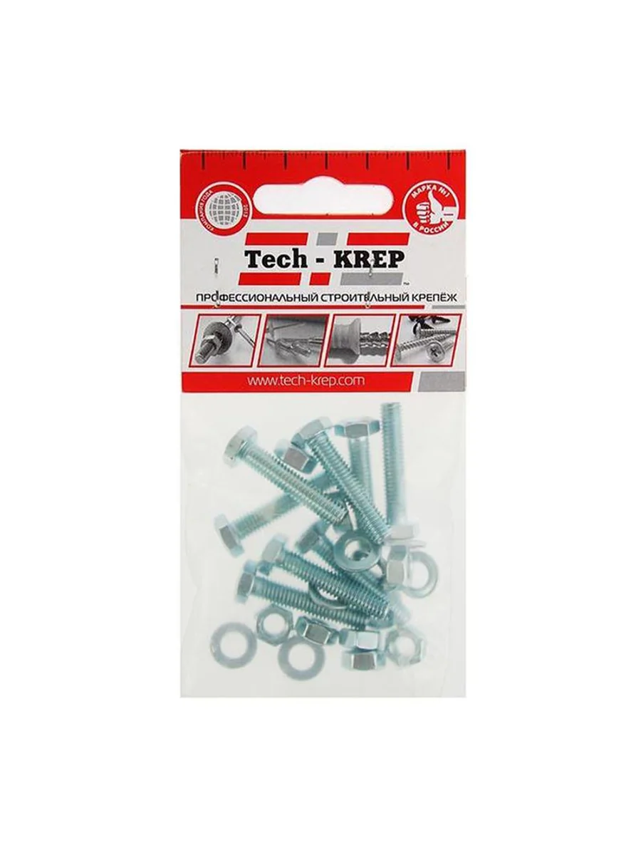 Болт с шестигранной головкой М6х30 DIN 933 класс прочн. 8.8 с гайкой и шайбой оцинк. (пакет) (уп.8шт) Tech-Krep/Zitar 114051