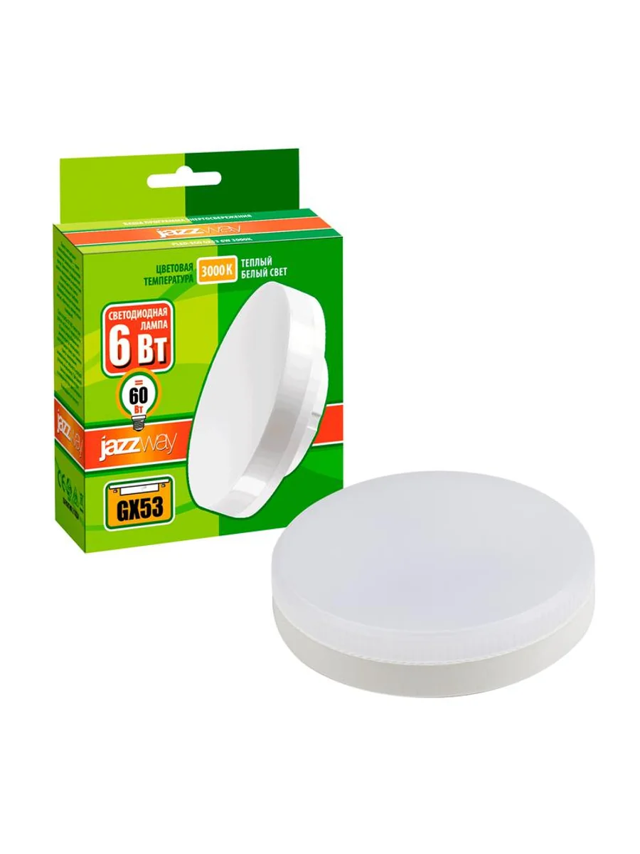 Лампа светодиодная PLED-ECO 6Вт таблетка матовая 3000К тепл. бел. GX53 460лм 230В JazzWay 2851987 - купить в KeepBuilding | KeepBuilding
