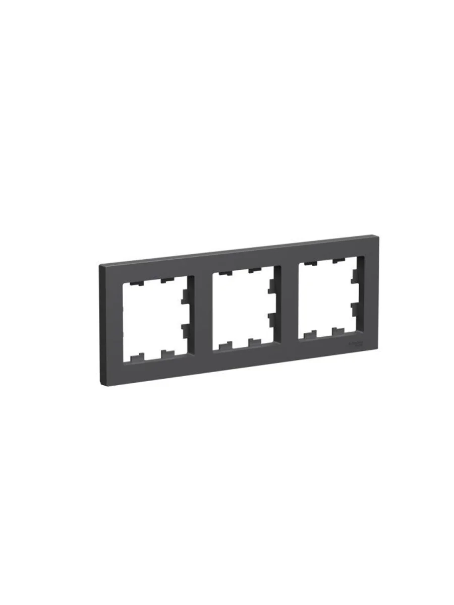 Рамка Systeme Electric (ранее Schneider Electric) серии AtlasDesign в цвете БАЗАЛЬТ трёхместная. - Устанавливается в вертикальном и горизонтальном положениях. - Лицевые детали из качественного ABS-пластика, устойчивого к царапинам и УФ-излучению. - Позволяет гармонично вписать электроустановочное изделие в интерьер помещения.