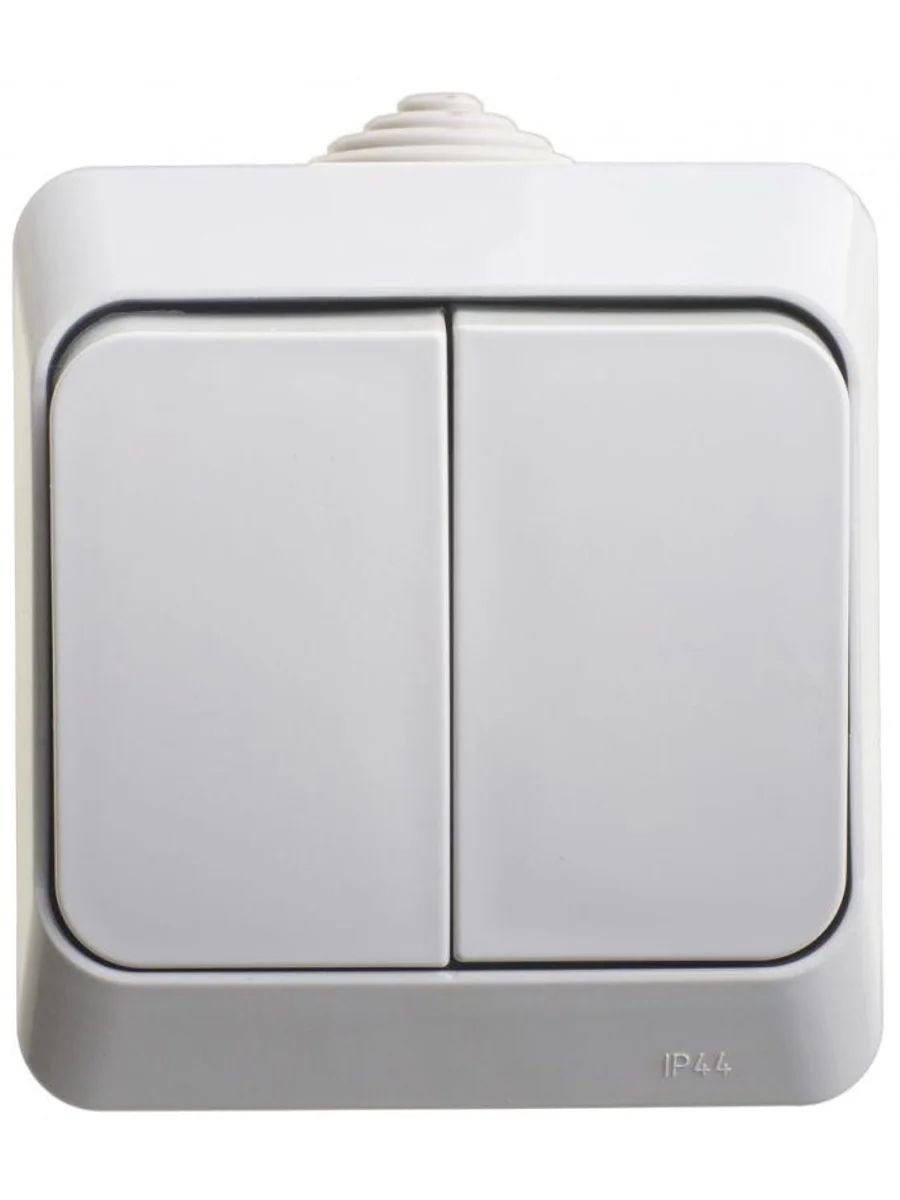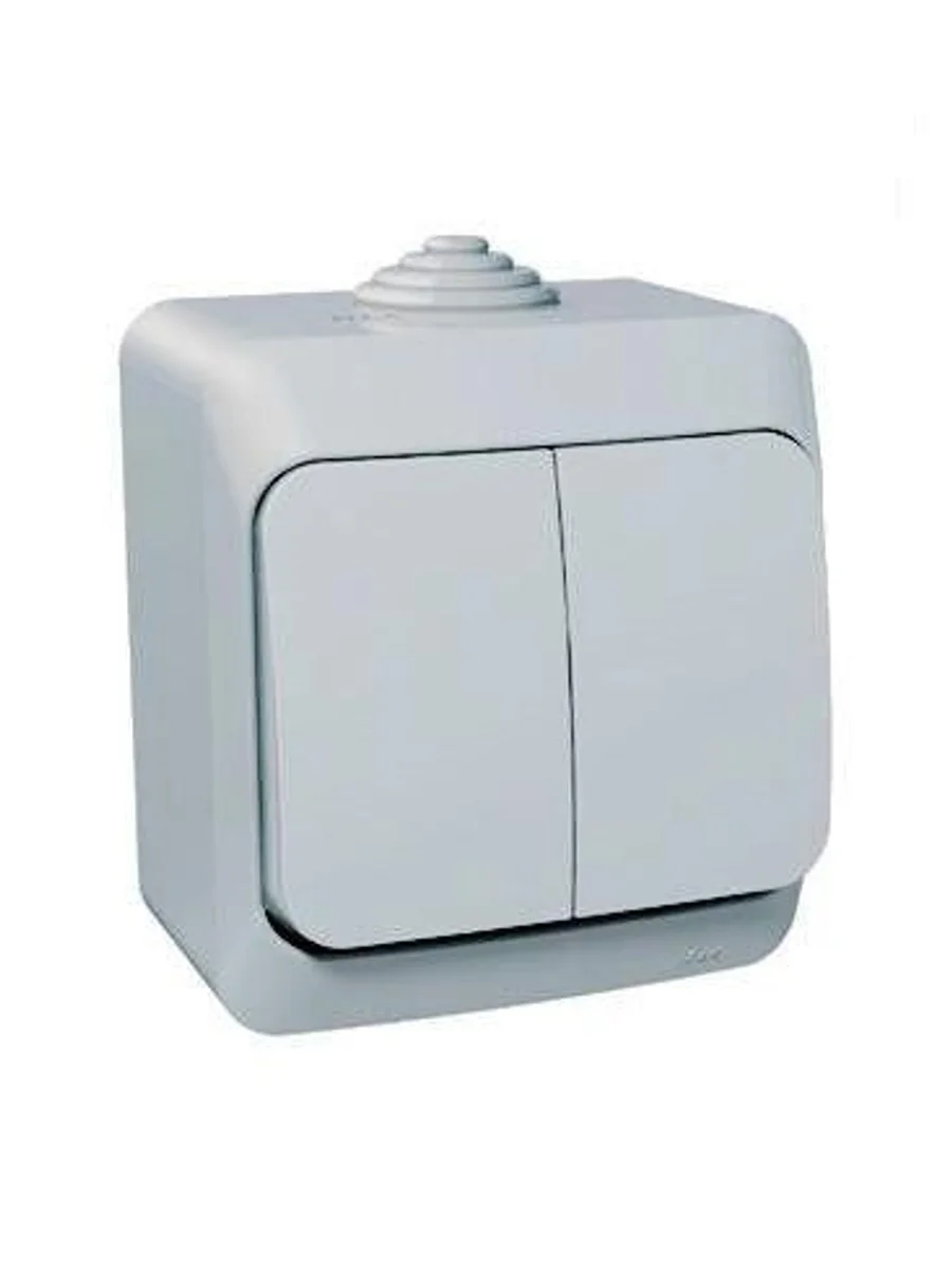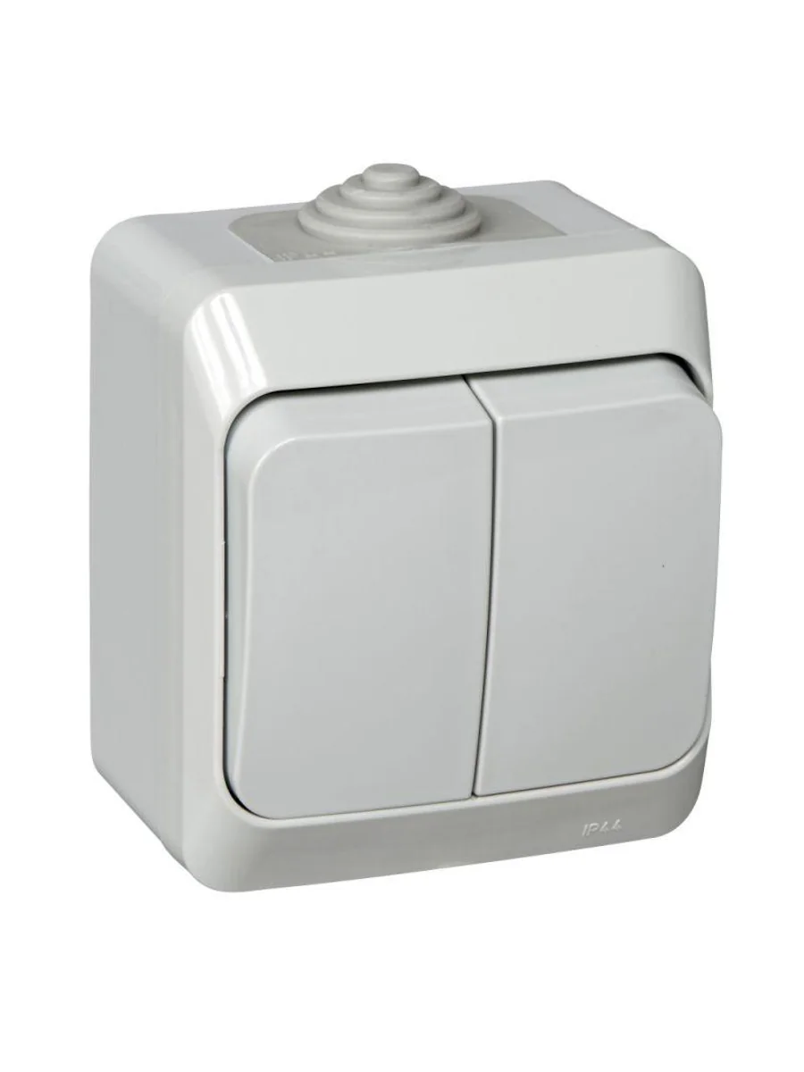 Выключатель Systeme Electric (ранее Schneider Electric) ЭТЮД (серый, открытой установки) двухклавишный предназначен для применения в сетях до 250В, на ток до 10А. Выключатель подходит для большинства типов ламп, включая люминесцентные. Две клавиши позволяют управлять двумя источниками света с одной точки. Он удобен в применении и отлично подходит для ванной комнаты (IP44). Сделано в России.