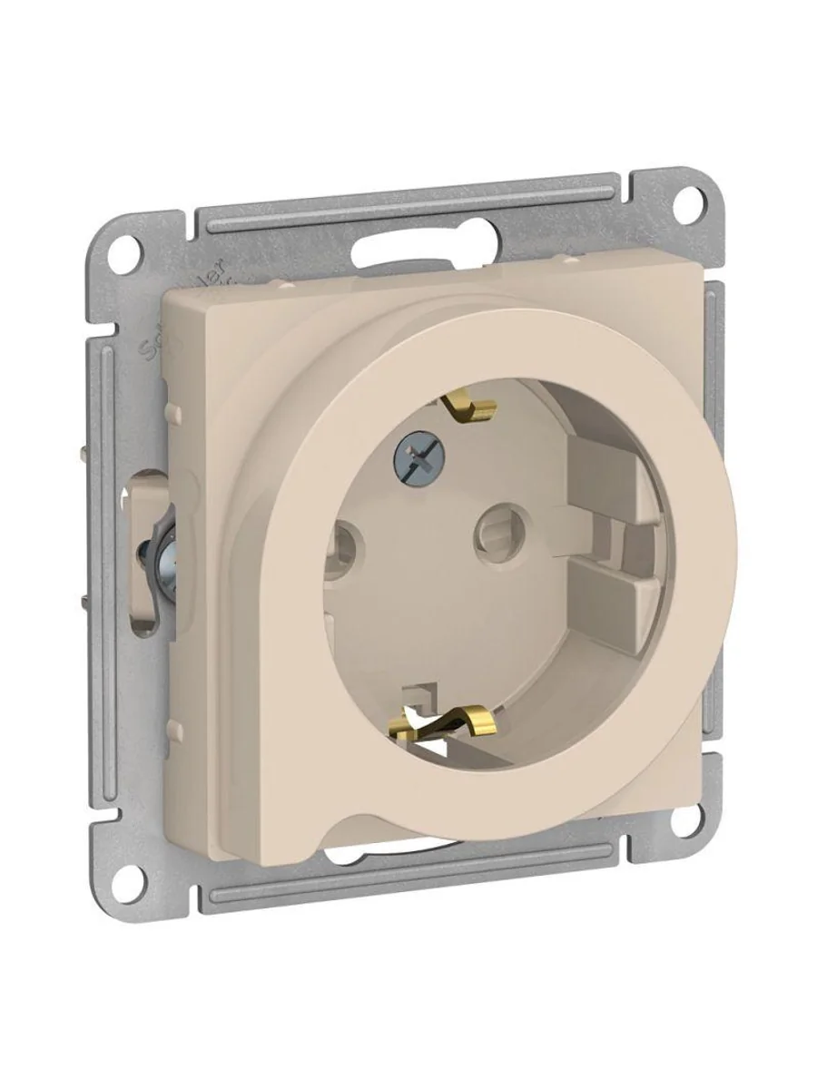 Механизм Systeme Electric (ранее Schneider Electric) серии AtlasDesign в цвете бежевый розетки одинарной с заземлением, шторками с выталкивателем подходит для сетей 250 В, на ток 16 А. Заземляющий контакт обеспечивает дополнительную защиту от удара электрическим током. Оснащена специальным механизмом: рычаг при повороте выталкивает вилку из розетки, что особенно удобно при частом подключении к розетке массивных вилок от бытовых приборов.