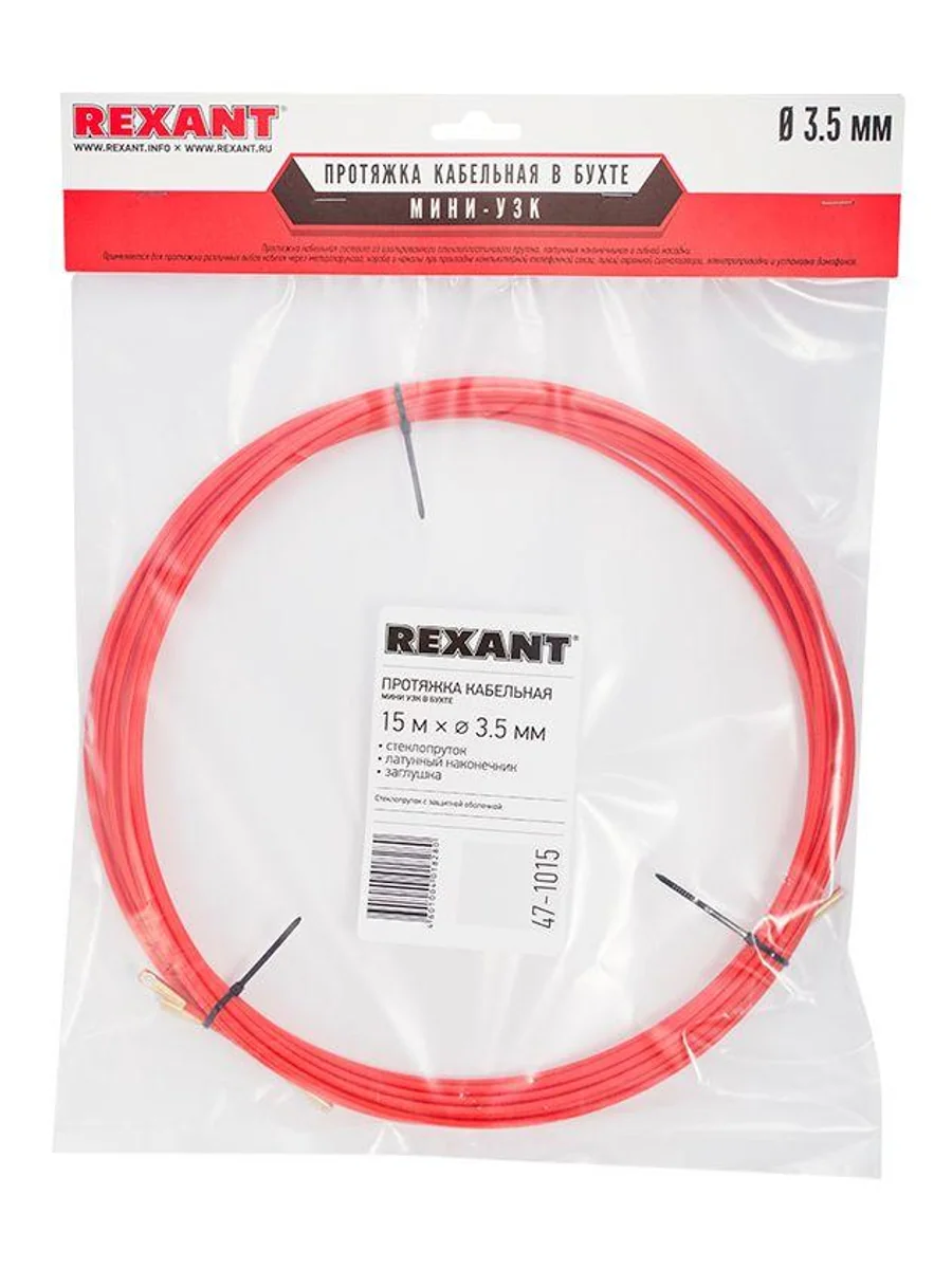 Протяжка кабельная (мини УЗК в бухте) 15м стеклопруток d3.5мм красн. REXANT 47-1015