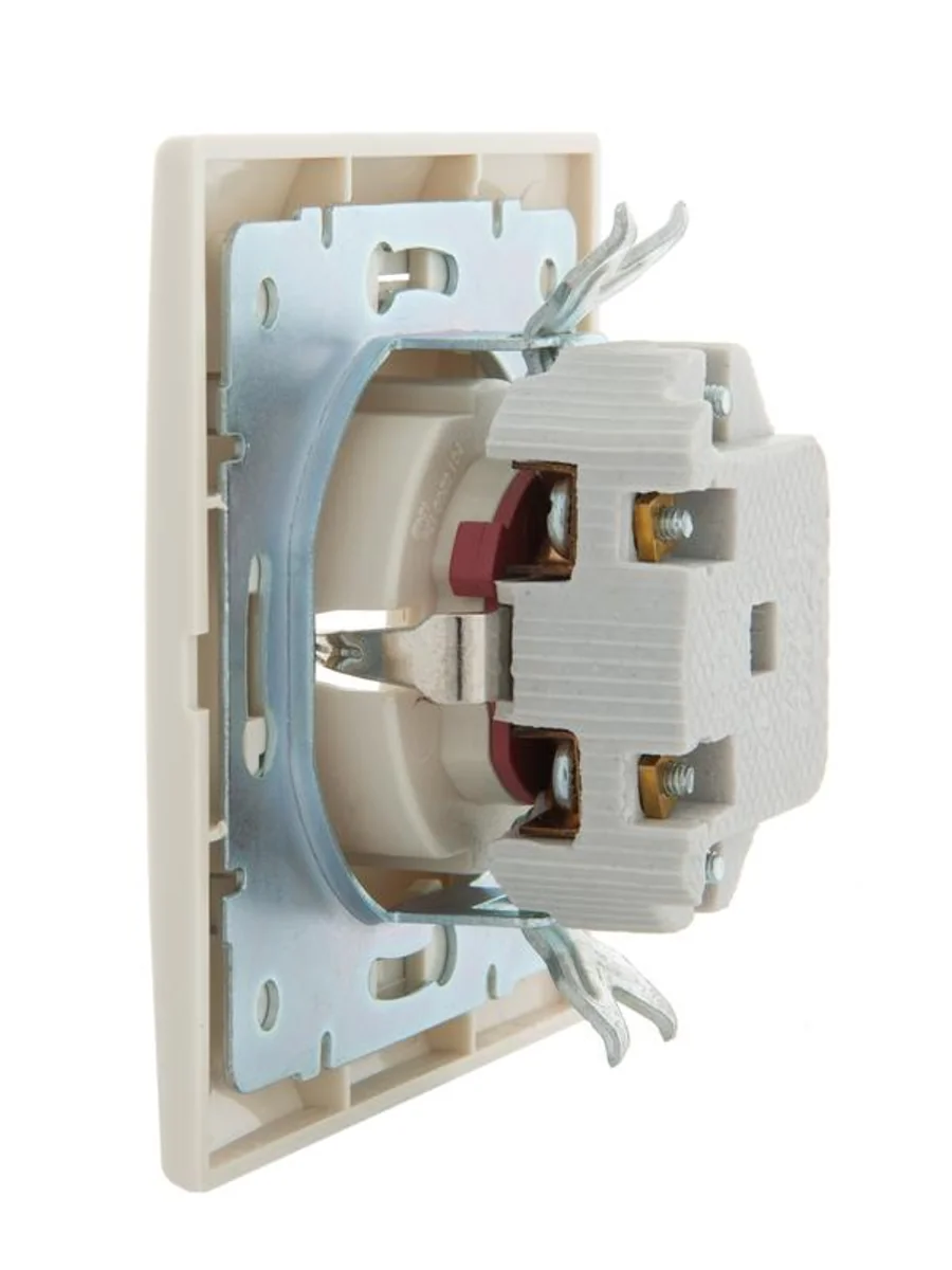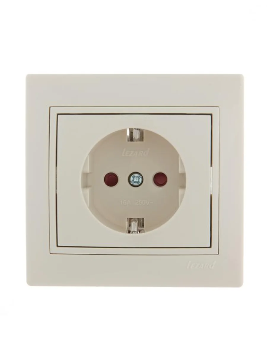 Розетка 1-м СП Mira 16А IP20 с заземл. защ. шторки со вставкой керамика крем. LEZARD 701-0303-124