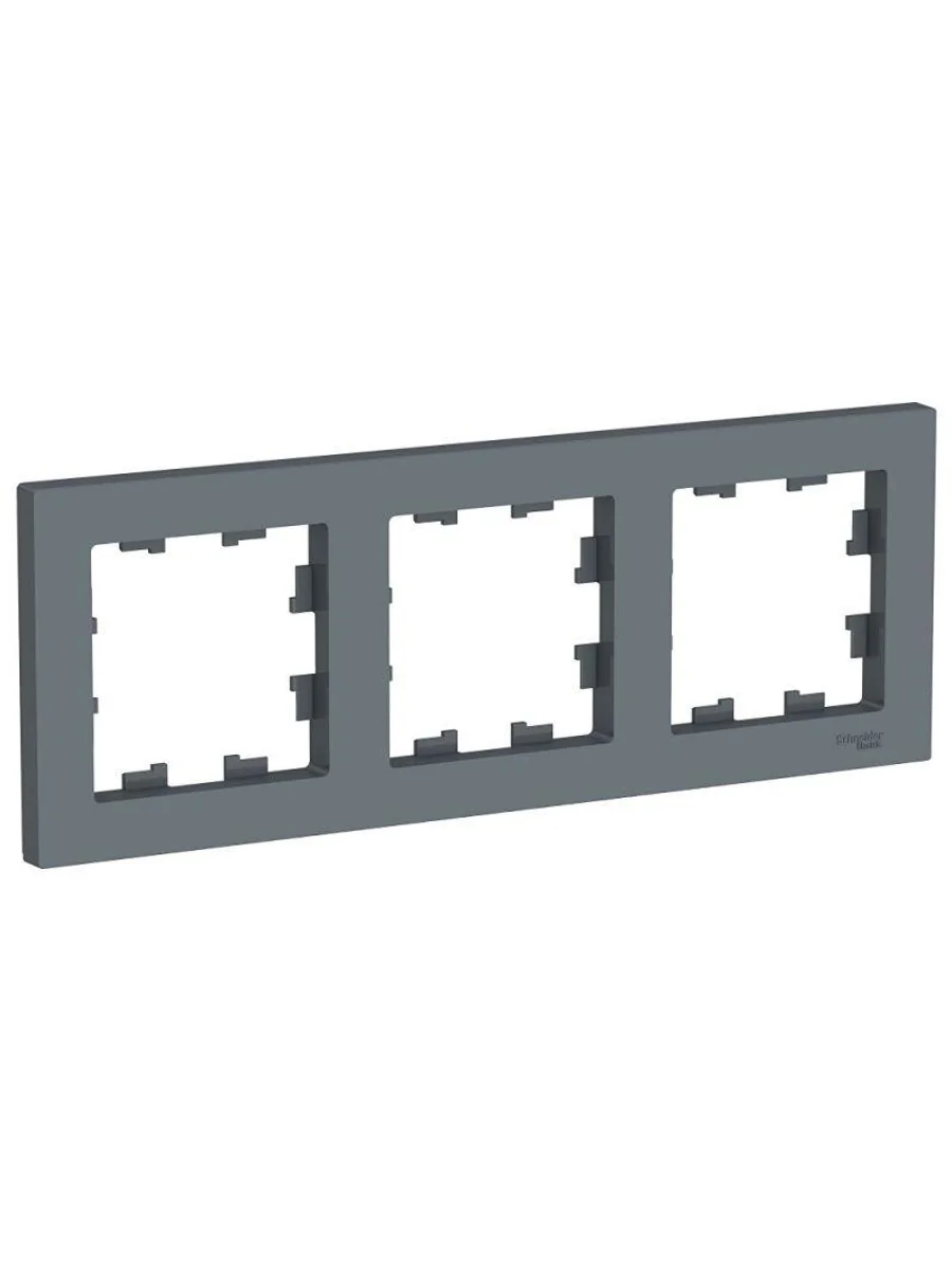 Рамка Systeme Electric серии AtlasDesign в цвете грифель трёхместная. - Устанавливается в вертикальном и горизонтальном положениях. - Лицевые детали из качественного ABS-пластика, устойчивого к царапинам и УФ-излучению. - Позволяет гармонично вписать электроустановочное изделие в интерьер помещения (ранее Schneider Electric S53P806V).