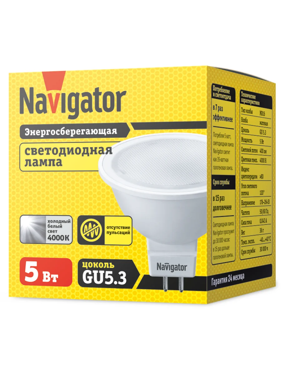 Лампа светодиодная 94 129 NLL-MR16-5-230-4K-GU5.3 5Вт 4000К нейтр. бел. GU5.3 380лм 220-240В Navigator 94129 - купить в KeepBuilding | KeepBuilding