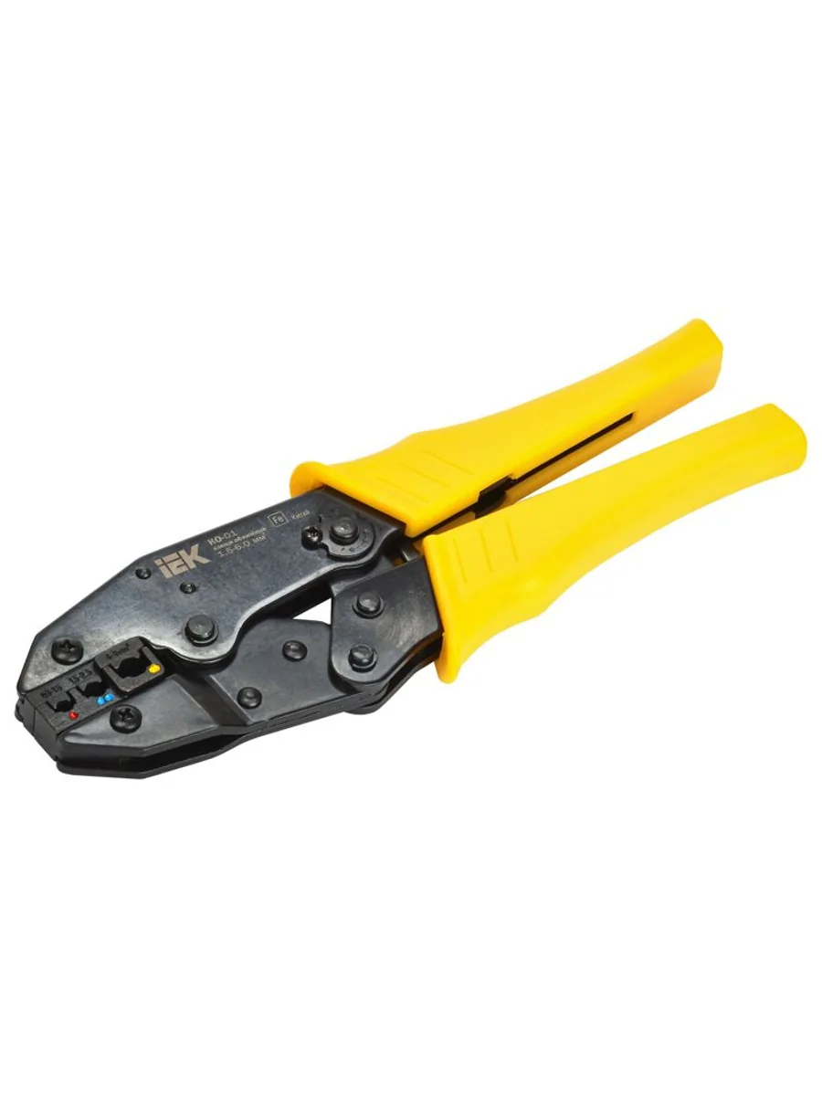 Клещи обжимные КО-01 предназначены для опрессовки основных видов и типоразмеров наконечников, таких как НВИ, НКИ, НИК, РпИп, РпИм, РшИп, РшИм. На губках клещей КО-1 нанесена идентификационная цветовая маркировка, соответствующая цвету изолирующей манжеты используемых наконечников: красная, синяя и желтая. Клещи, изготовленные из 3-мм закаленной стали, имеют храповой механизм. Оборудованы специальным приспособлением, позволяющим разблокировать их из любого положения.